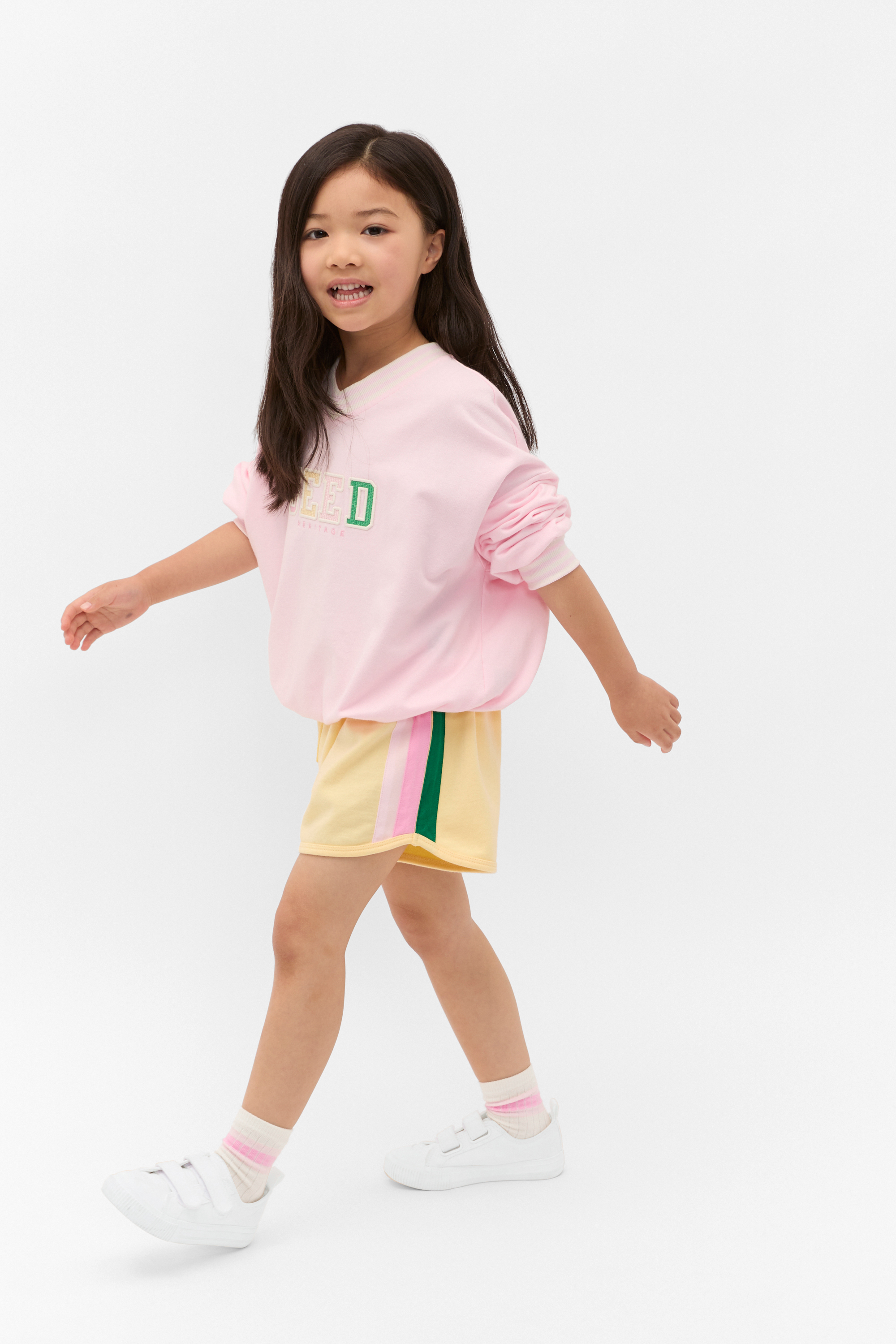 Ready for girls who run and jump, these little shorts are cute and comfy. Crafted in premium cotton, they feature an elasticated waistband with a drawstring and a colourful stripe design.