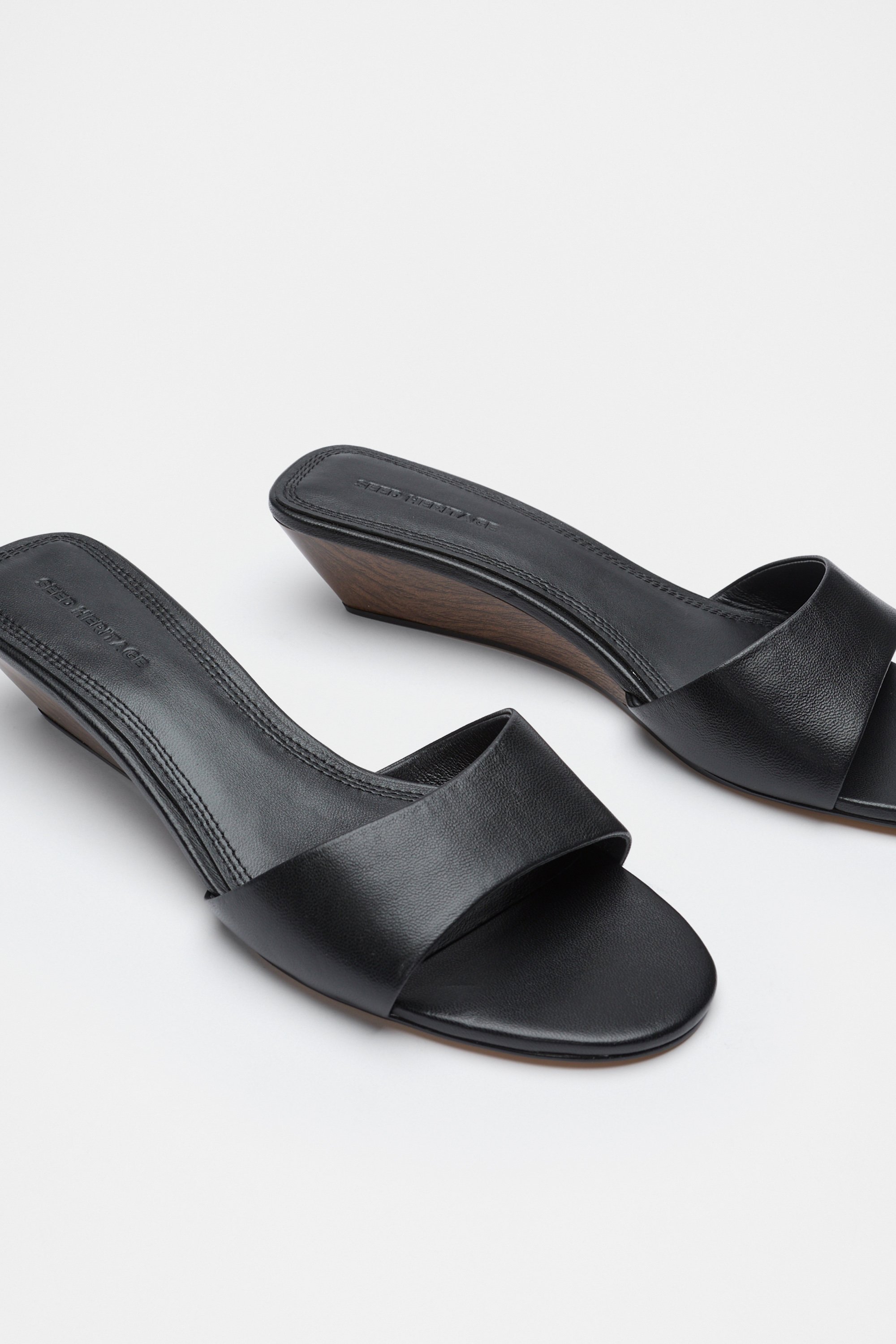 Upgrade your new season dressing with these chic wedges. Featuring a leather upper and leather lining, they're a sophisticated option for everyday styling with a comfortable heel and an easy slip-on design. As a proud member of Leather Working Group, Seed supports their mission of greater transparency and continuous improvement, helping to create more responsible leather production. For more information, please visit Leather Working Group.
