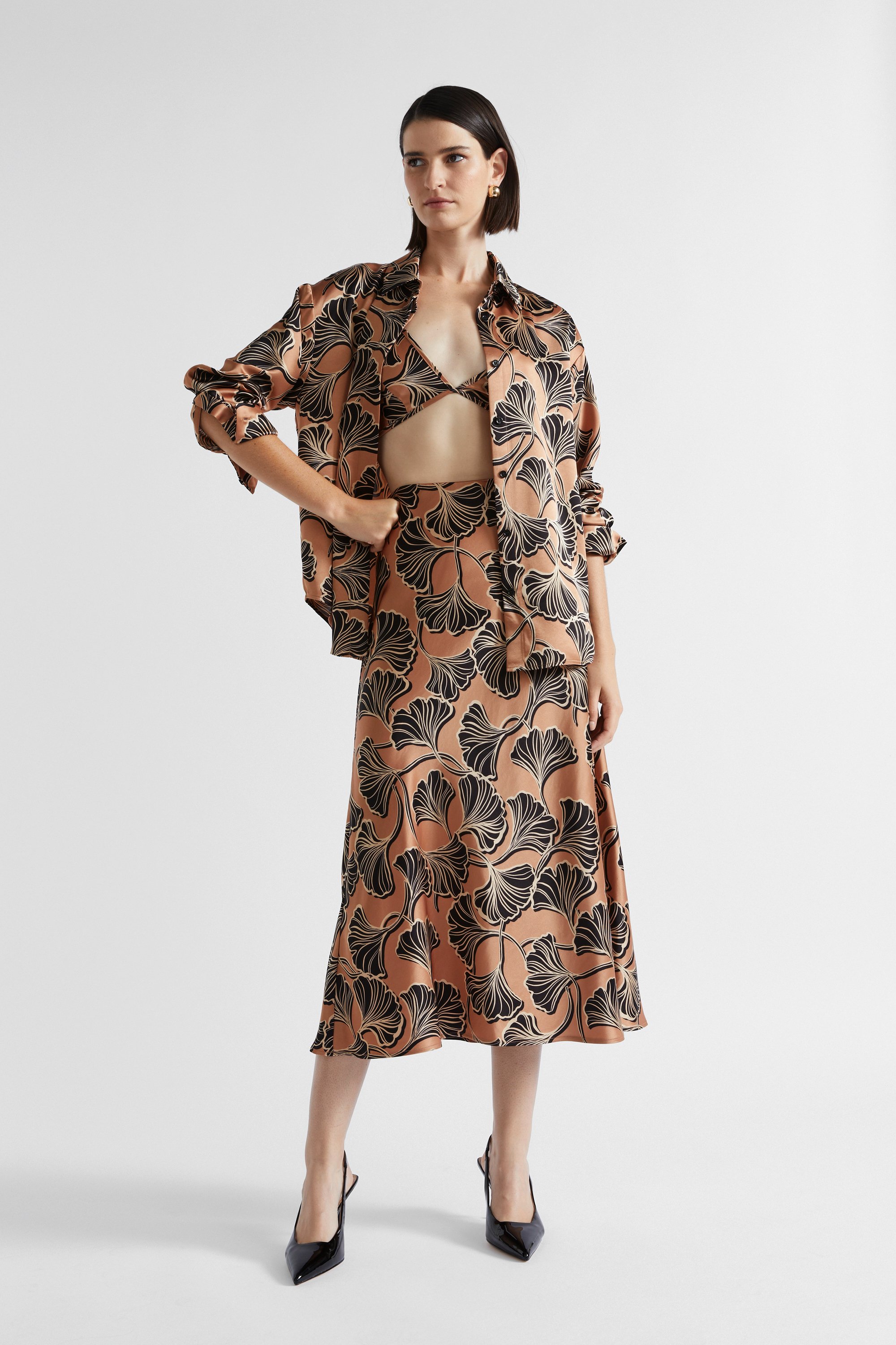 A statement for work or an evening out, this slip-style midi skirt is an ideal addition to your wardrobe. It features an elasticated waistband and a tonal, retro-style floral pattern. Crafted from a satin blend, it can be worn with the matching bralette or shirt for a coordinated look.