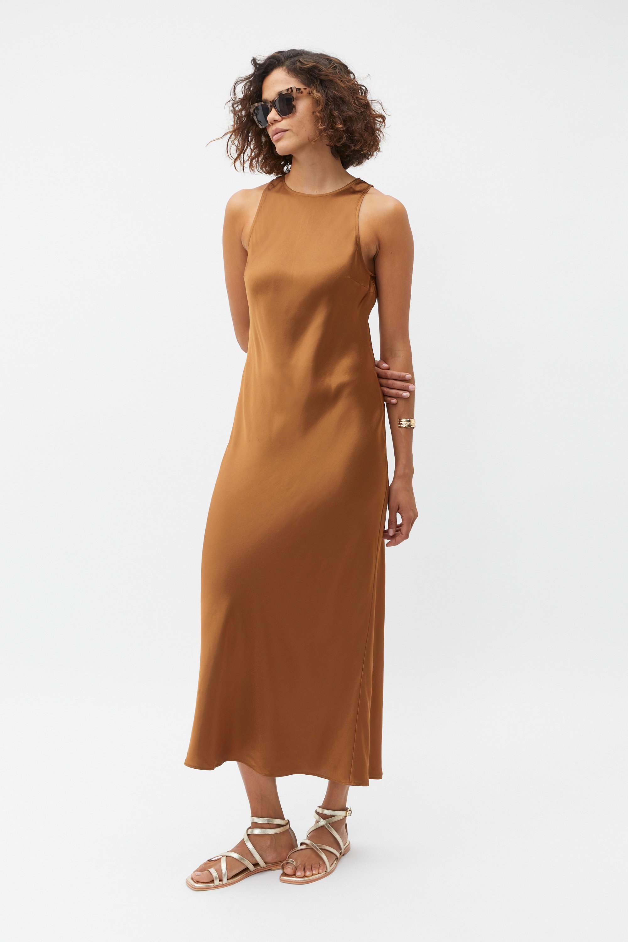 Satin Bias Racer Dress  Cinnamon Spice  hi-res Satin Bias Racer Dress  Cinnamon Spice  hi-res Satin Bias Racer Dress  Cinnamon Spice  hi-res Satin Bias Racer Dress  Cinnamon Spice  hi-res