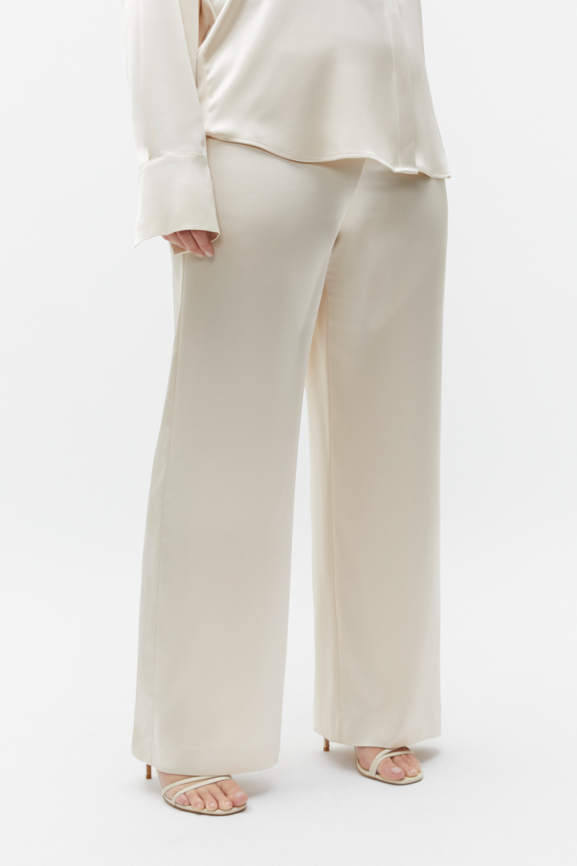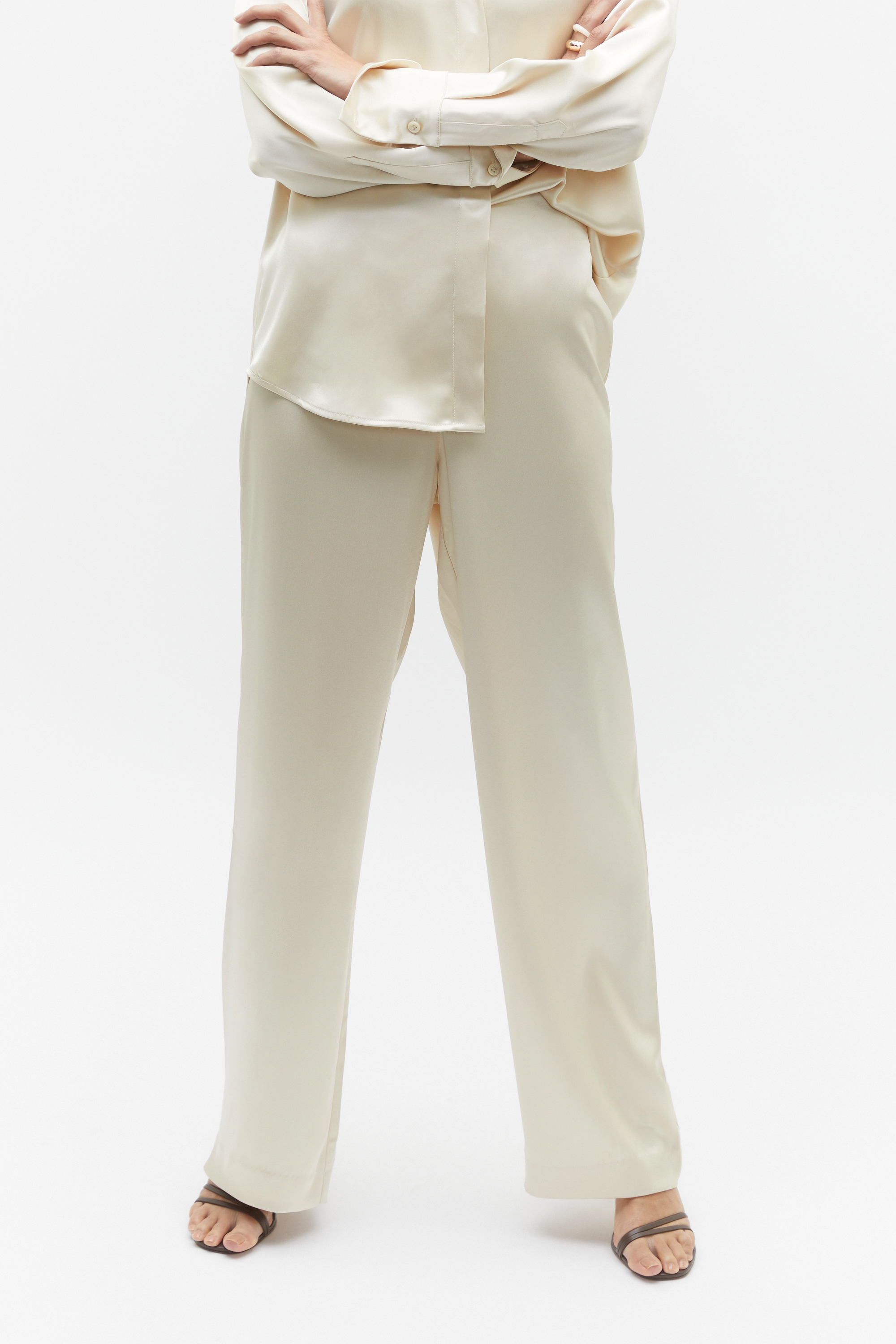 Add an elegant touch to your outfit with these pants, crafted from a fluid satin. They feature a flat-front waistband with elastic at the rear, and a wide leg shape. Wear them with the matching shirt for a sleek coordinated look.