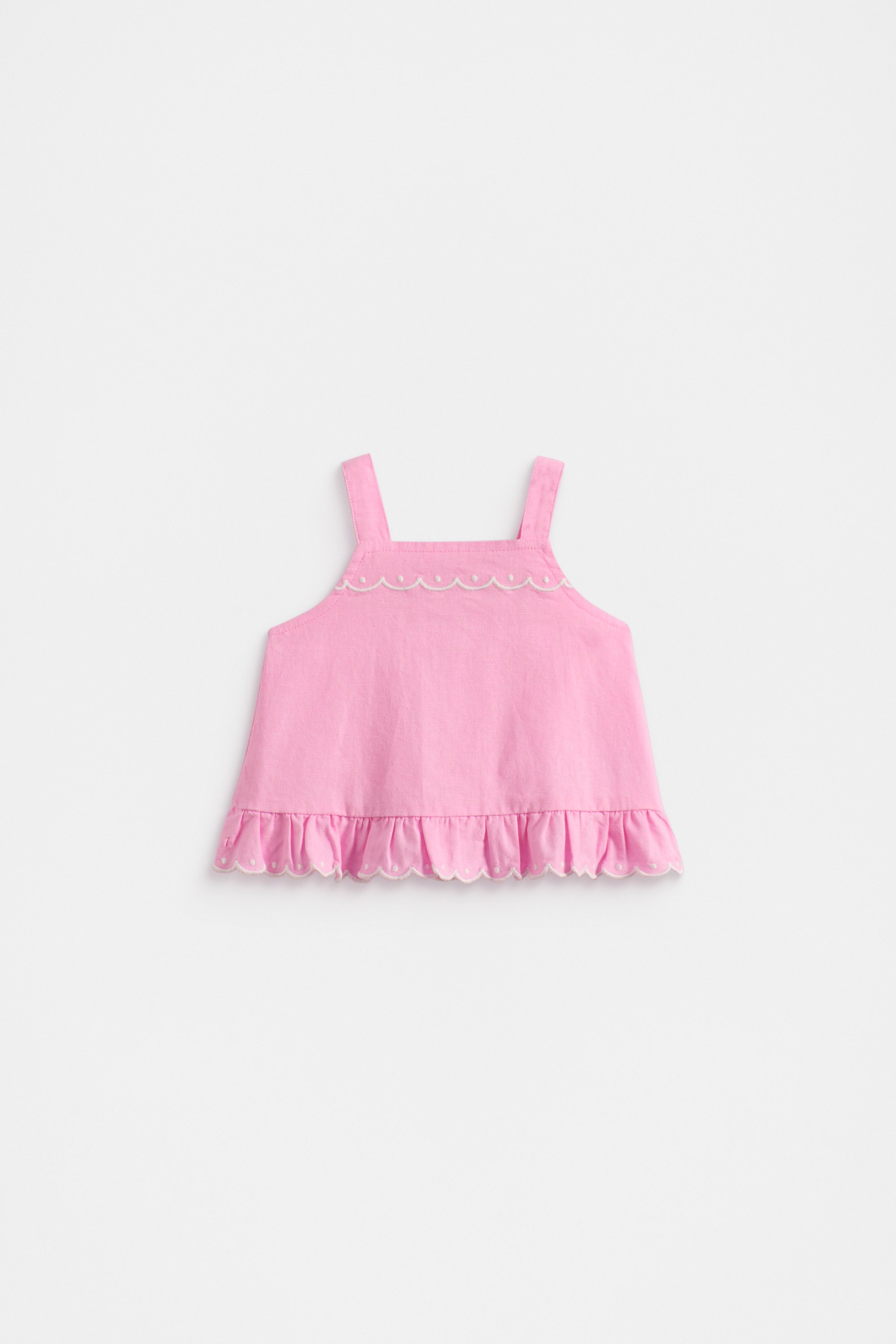 A lightweight style for summer, this cami features the sweetest ruffle hem and scallop trim. Pair with the matching bloomers for a cute coordinated set.