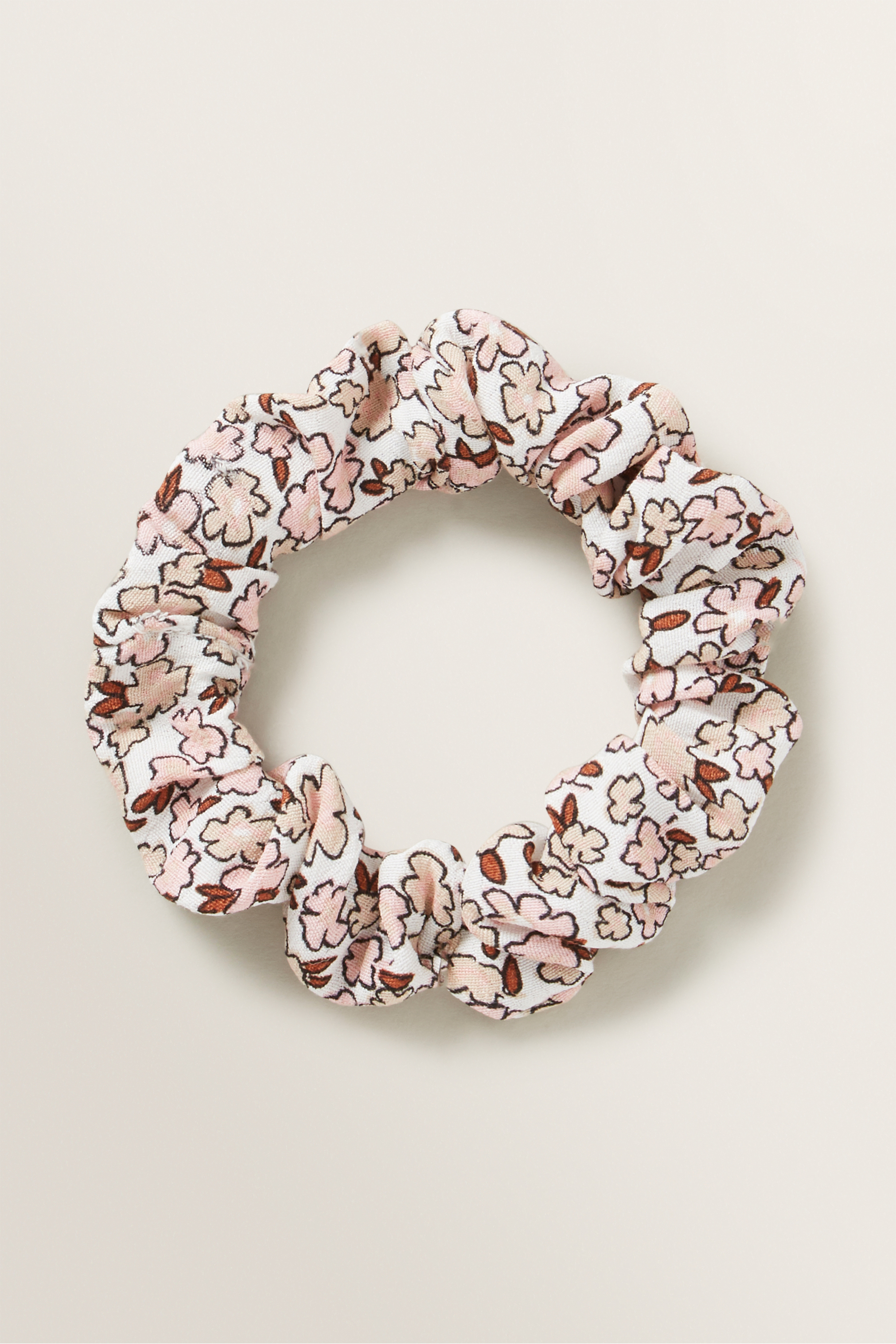 Adorned in a floral print, this this Scrunchie features a super-stretchy base, perfect for wrapping around ponytails. This is not a toy. Potential choking hazard. Not recommended for children 3 years and under.