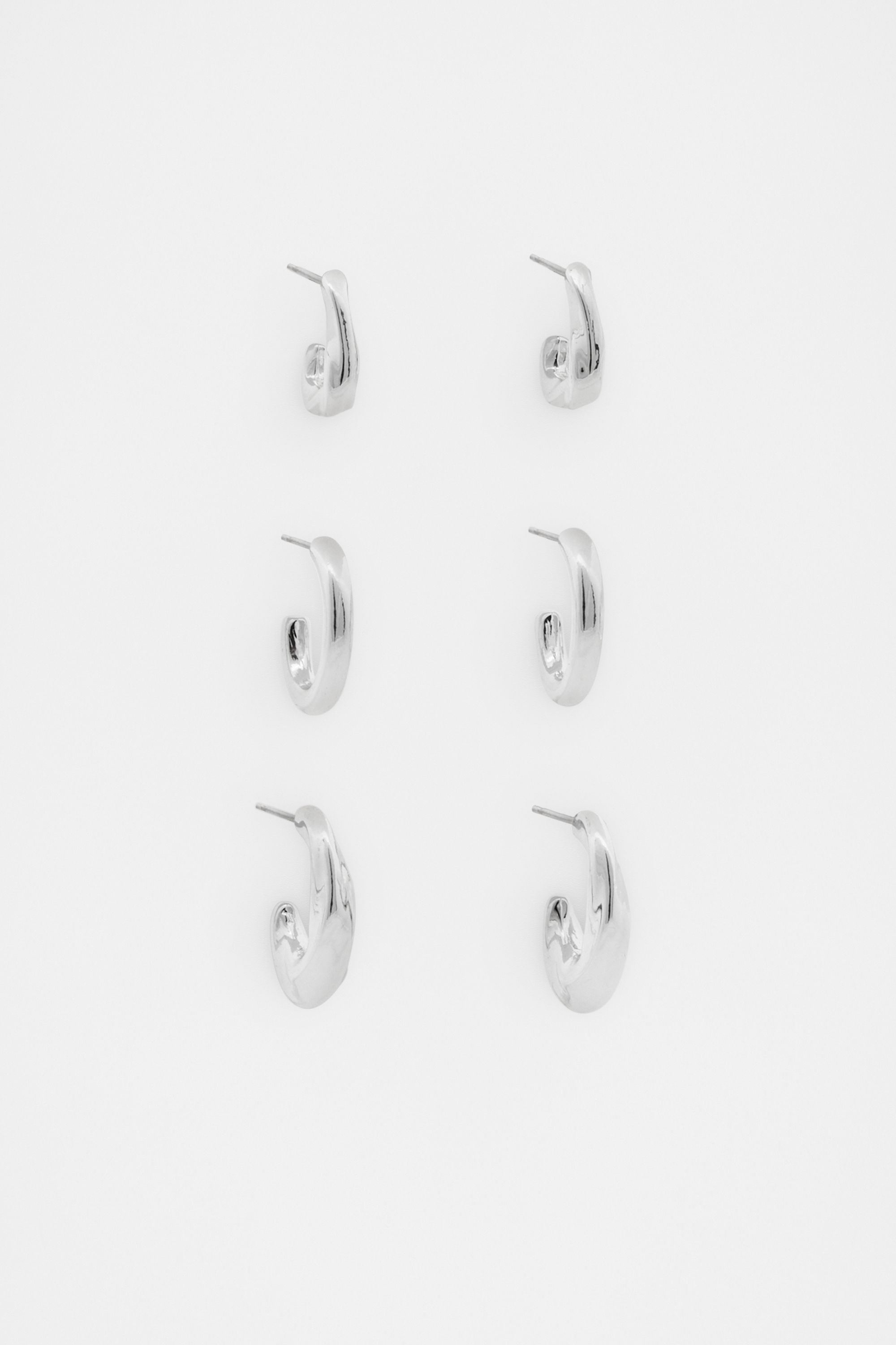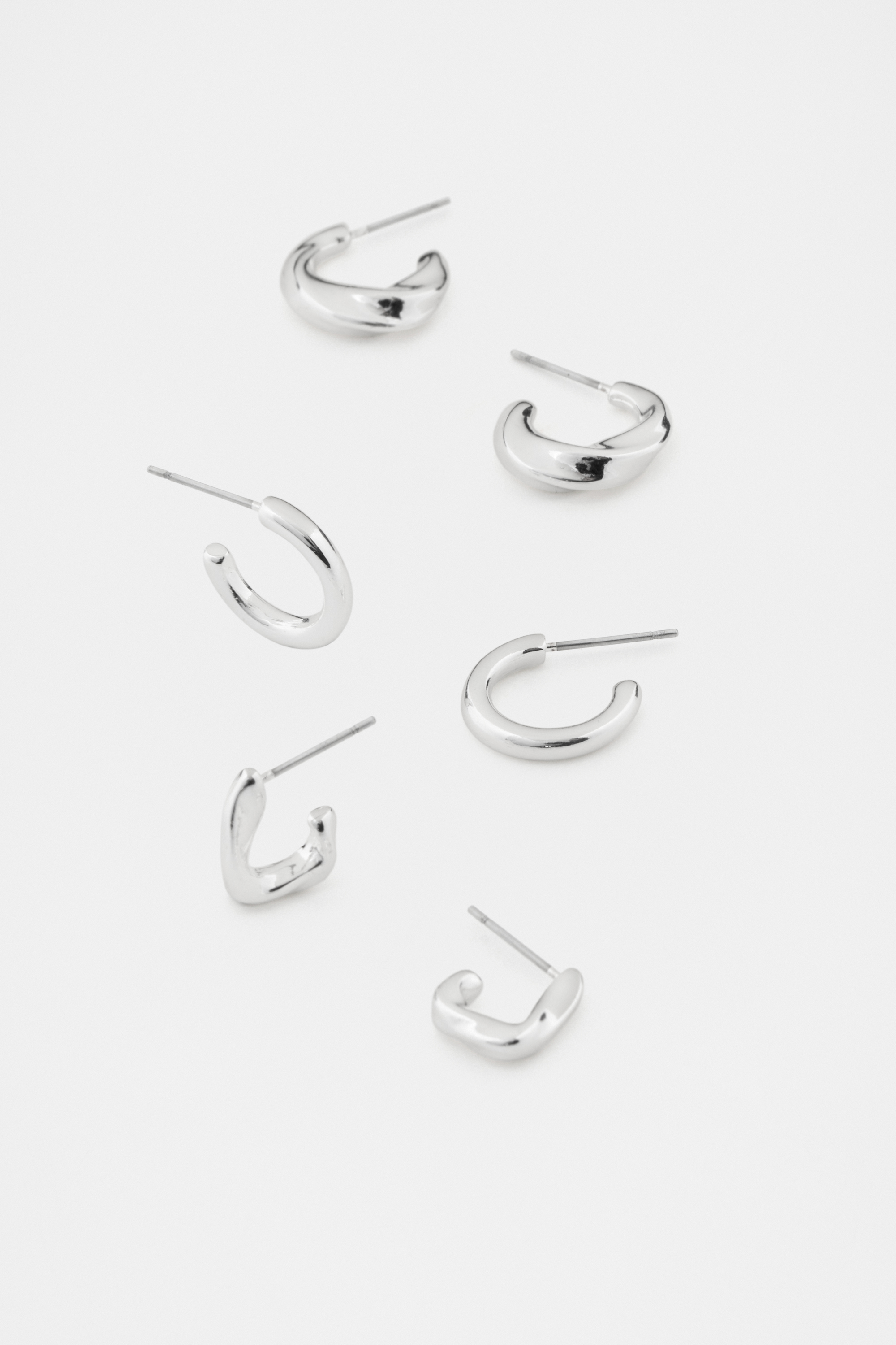 Convenient and chic, this pack has on-trend options ready for any occasion. It includes three hoop styles with sculptural designs. Available in either silver or gold.