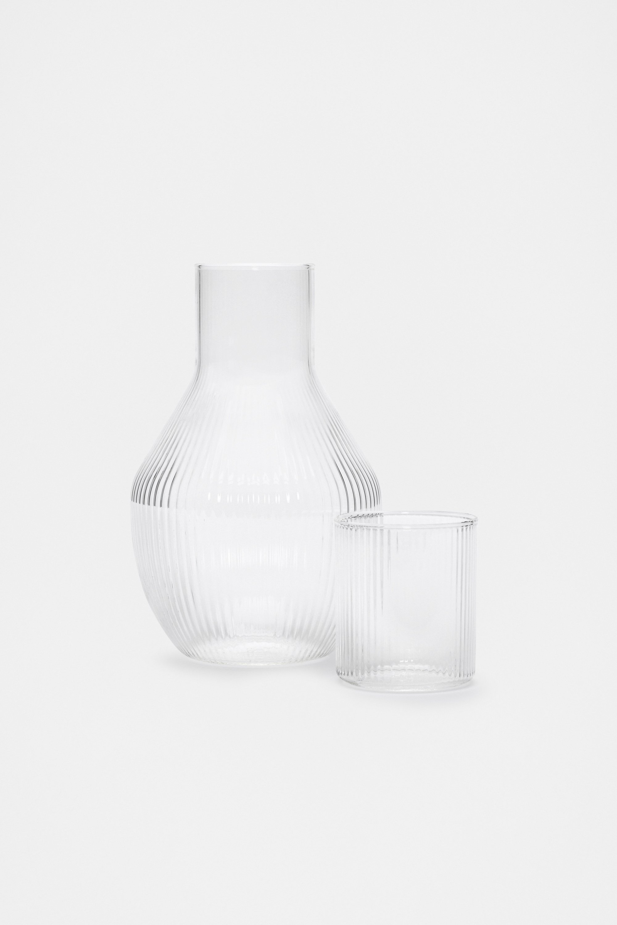 Ideal as an accent piece for a desk or table, this set includes a carafe and a matching glass, making it the perfect gift. In a dynamic shape with a textured ripple design, the set is designed to complement the rest of this season's glassware range.