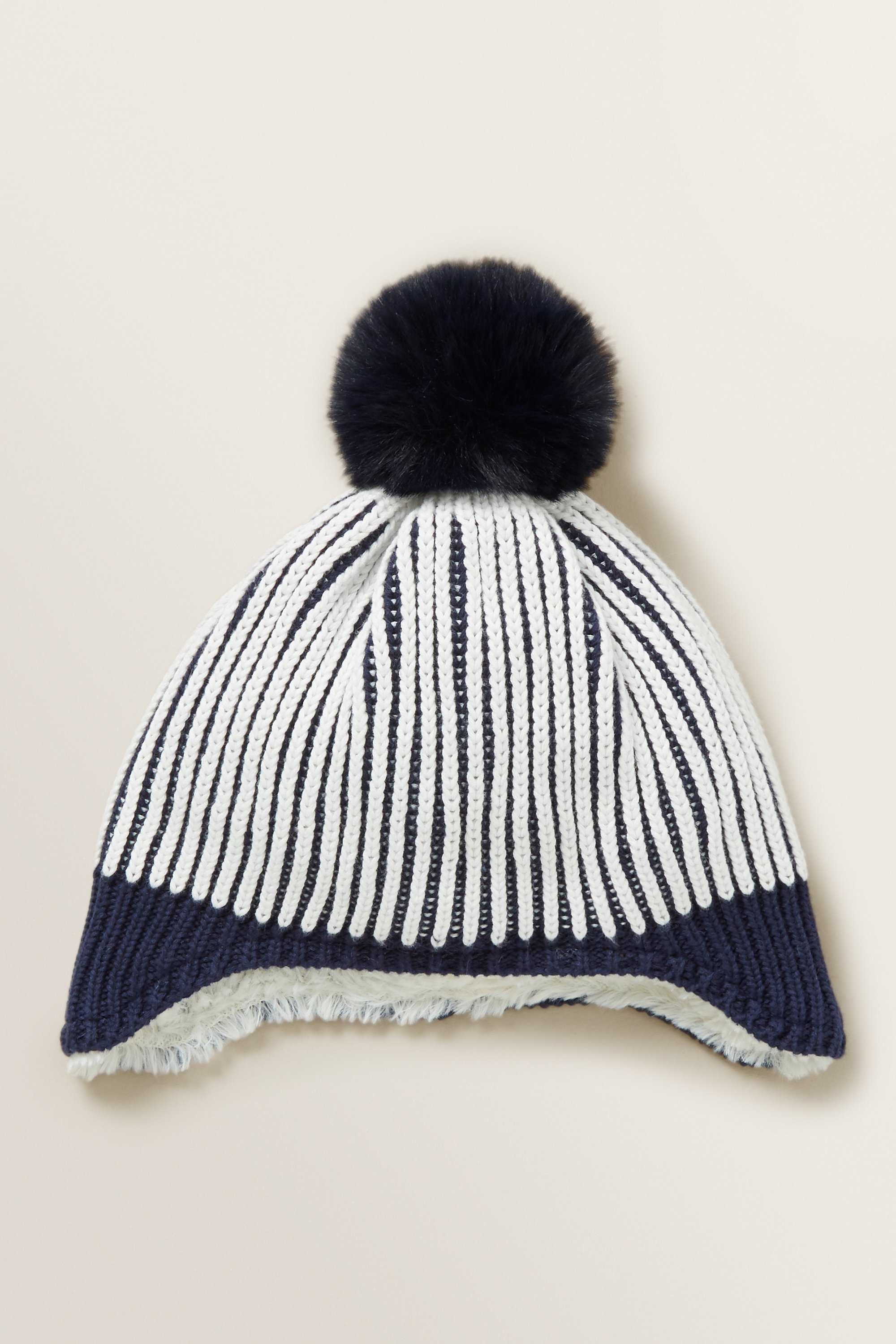 Tiny tots will love to wear this Sherpa Lined Beanie. Featuring faux shearling lining, this beanie is detailed with a yarn-dyed exterior, ear flaps and oversized pom pom. Check the label inside of the garment for care instructions.