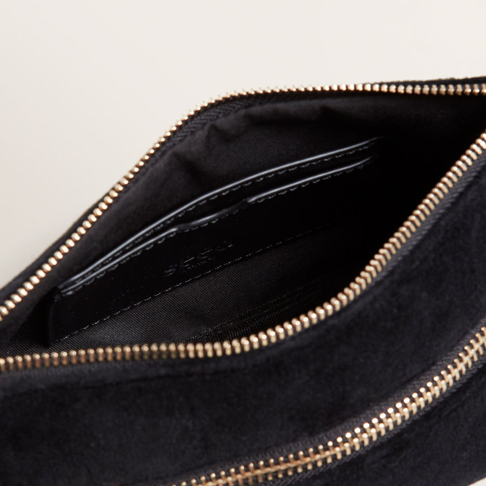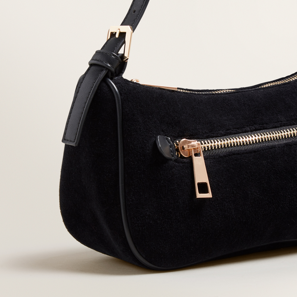 Sleek and sophisticated, this Shoulder Bag is a luxurious nineties revival piece. Designed to sling over the shoulder, this bag features a zip top closure, and is detailed with a side zip. Made from a velvet fabrication, this Shoulder Bag is available in one size.