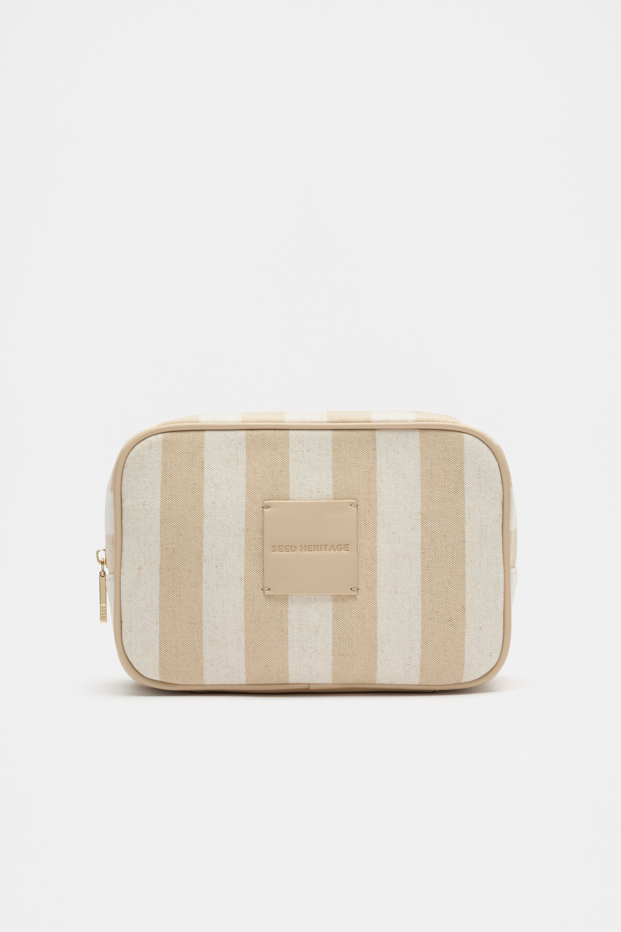 Small Stripe Make Up Bag  Ecru  hi-res Small Stripe Make Up Bag  Ecru  hi-res
