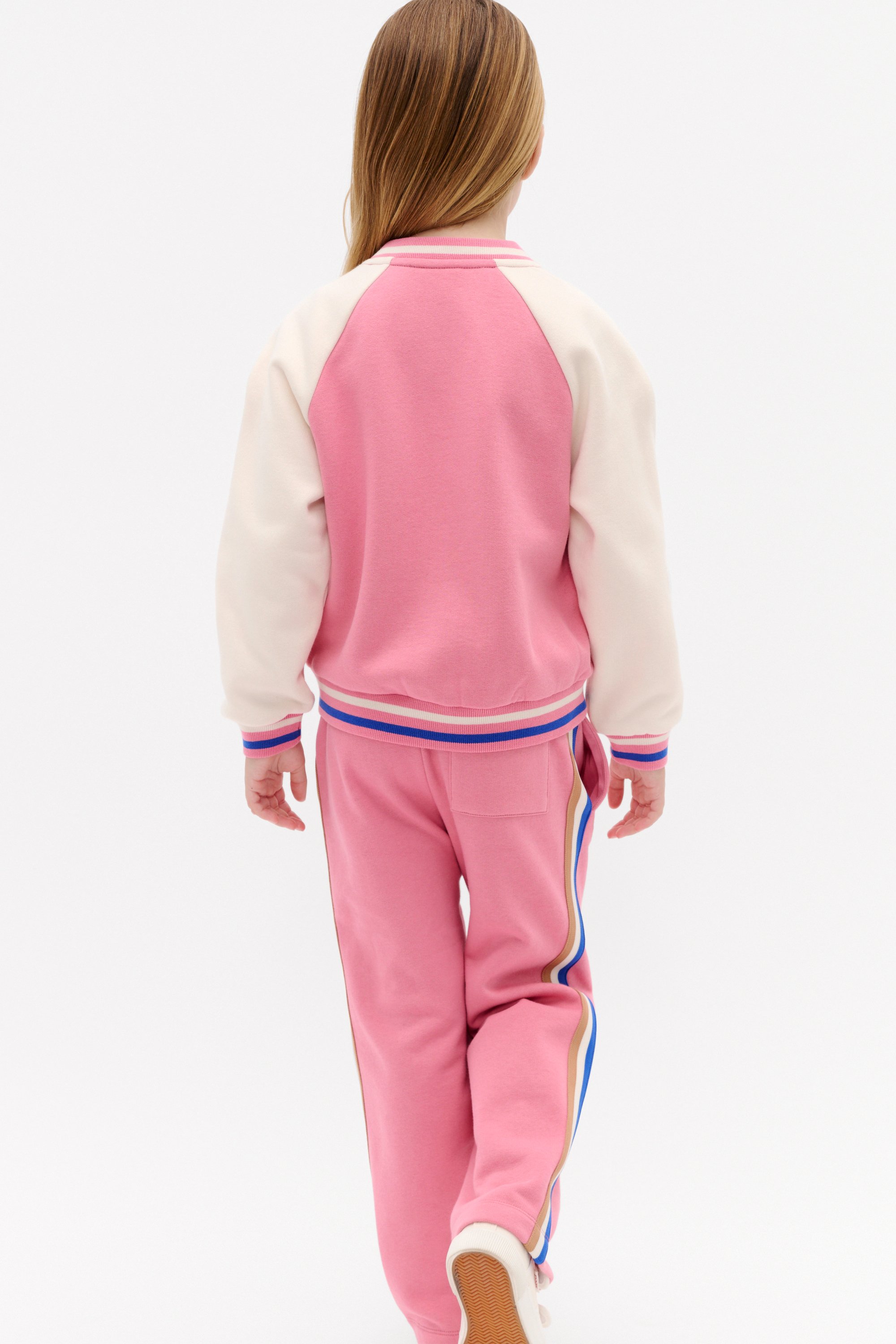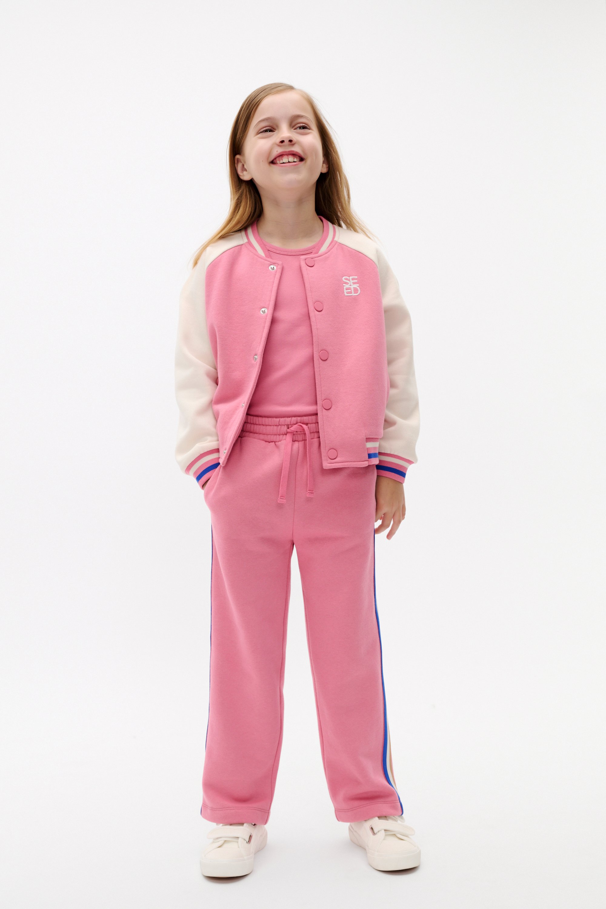 A classic style for her transeasonal wardrobe, this jacket has all the trimmings of a classic bomber. Crafted in premium cotton, it features a collar, long sleeves and elasticated cuffs and trims with a stripe detail. It buttons up with press stud buttons and has angled pockets and an embroidered Seed Heritage logo. Style with the matching tracksuit pants to complete her head-to-toe set.
