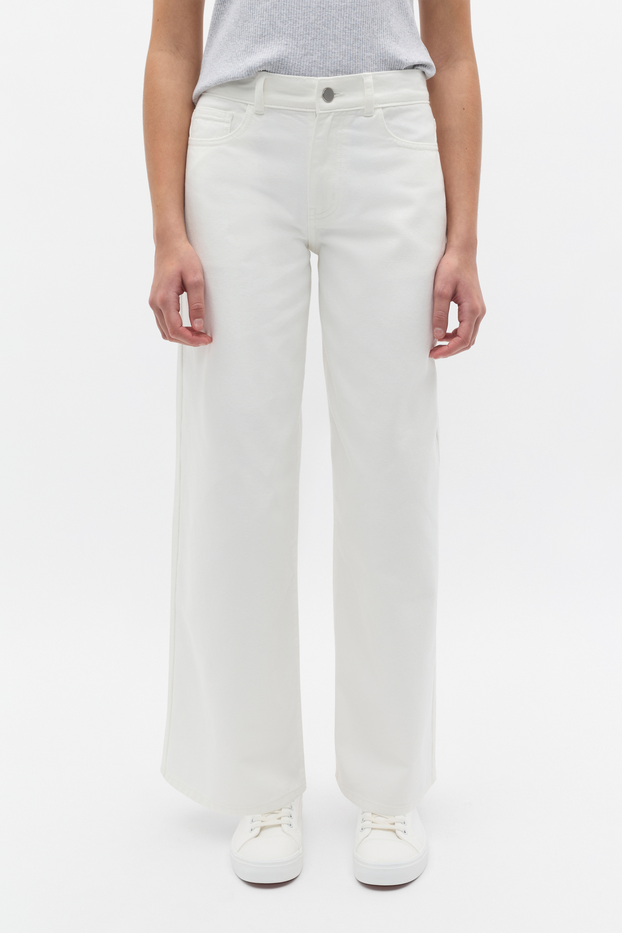 Her new favourite pair, these jeans are a comfortable option with an effortlessly on-trend finish. Crafted in a soft cotton blend, they feature a fixed waistband with a zip front, belt loops, pockets and a wide leg shape.