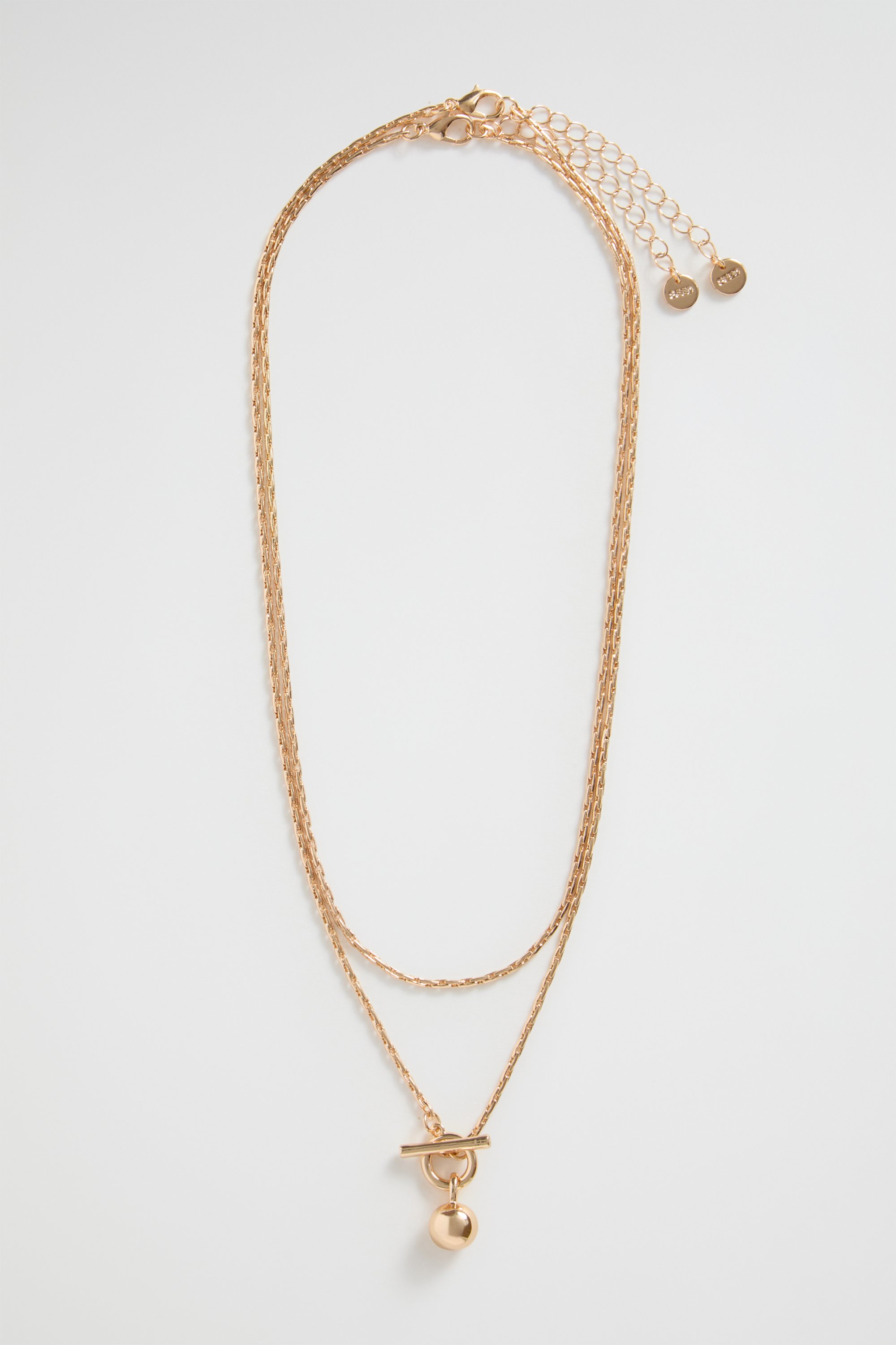 Add a subtle statement to any outfit with this necklace, featuring two classic chains of different length. One chain is a simple design, while the other has a T and O and rounded pendant detail. Wear the chains separately or together, and pair with the matching hoops or studs for a coordinated look.