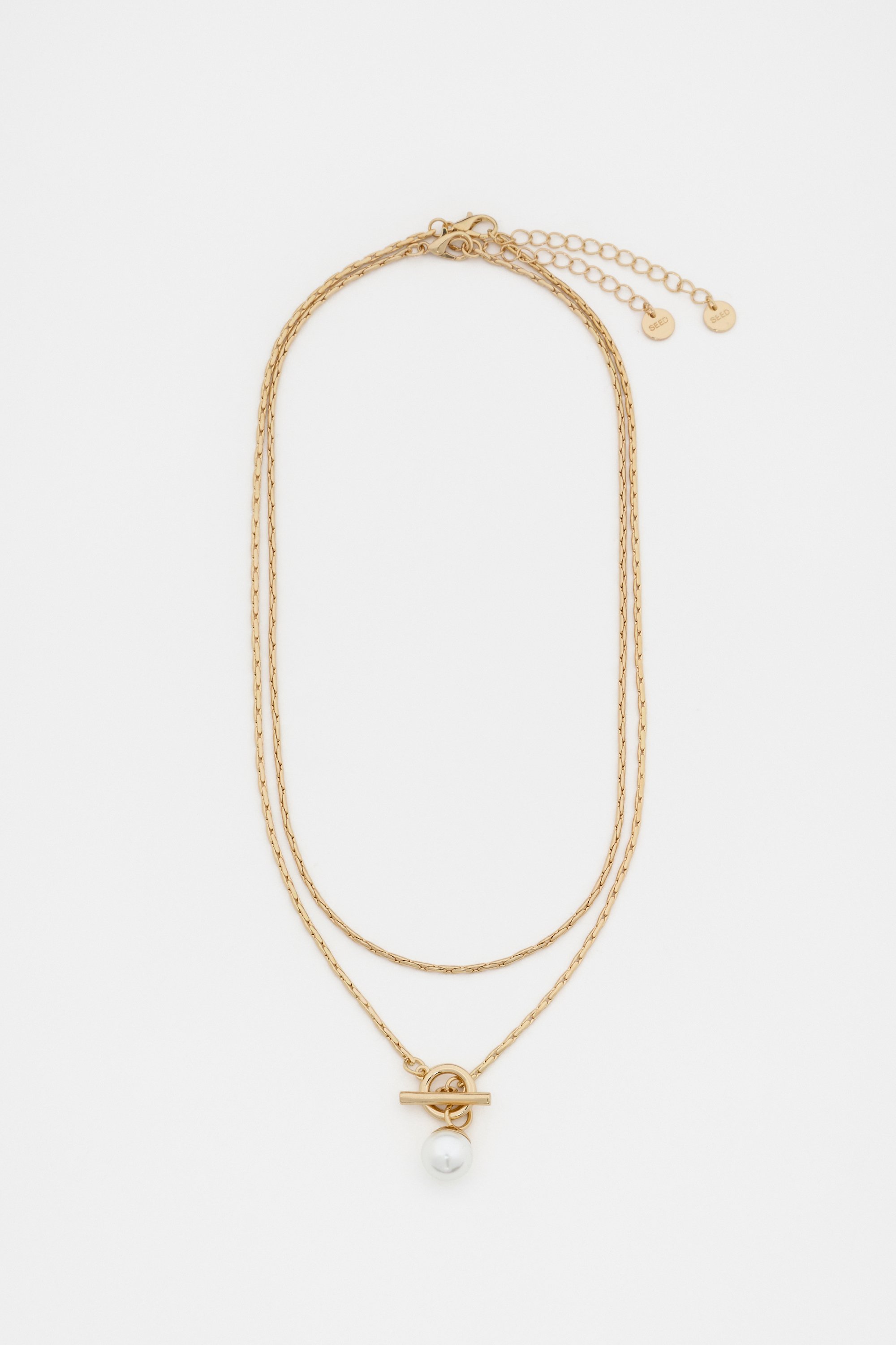 Add a subtle statement to any outfit with this necklace, featuring two classic chains of different length. One chain is a simple design, while the other has a T and O and rounded pendant detail. Wear the chains separately or together, and pair with the matching hoops or studs for a coordinated look.
