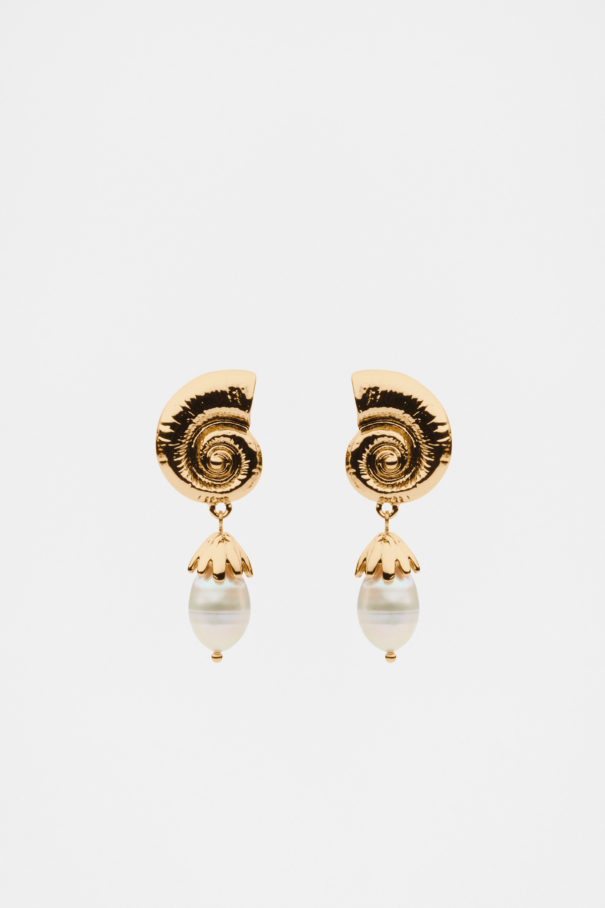 Spiral Shell Pearl Drop Earring  Gold  hi-res Spiral Shell Pearl Drop Earring  Gold  hi-res