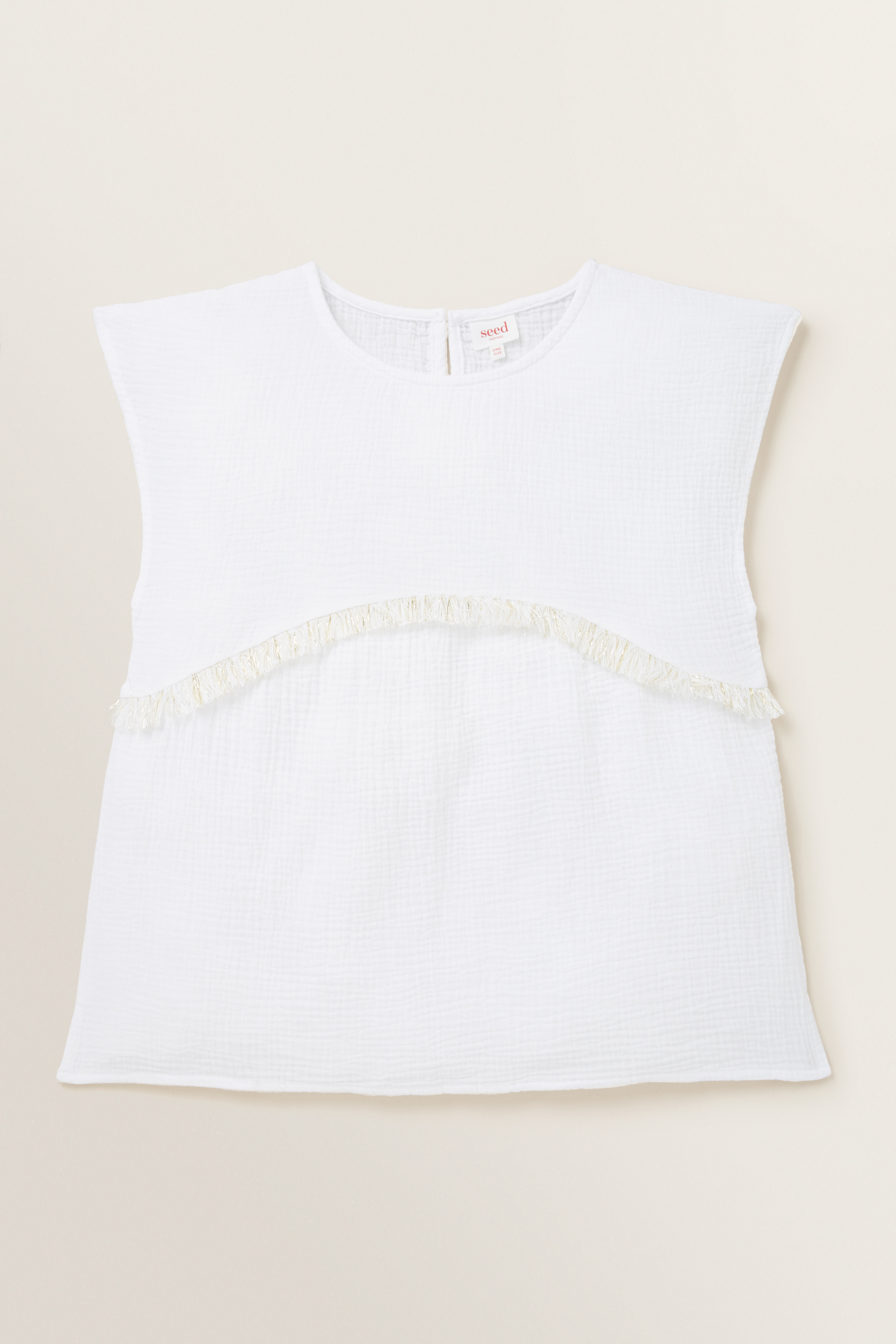 Featuring a 100% cotton fabrication, this Splice Poncho is decorated with a delicate contrast trim.