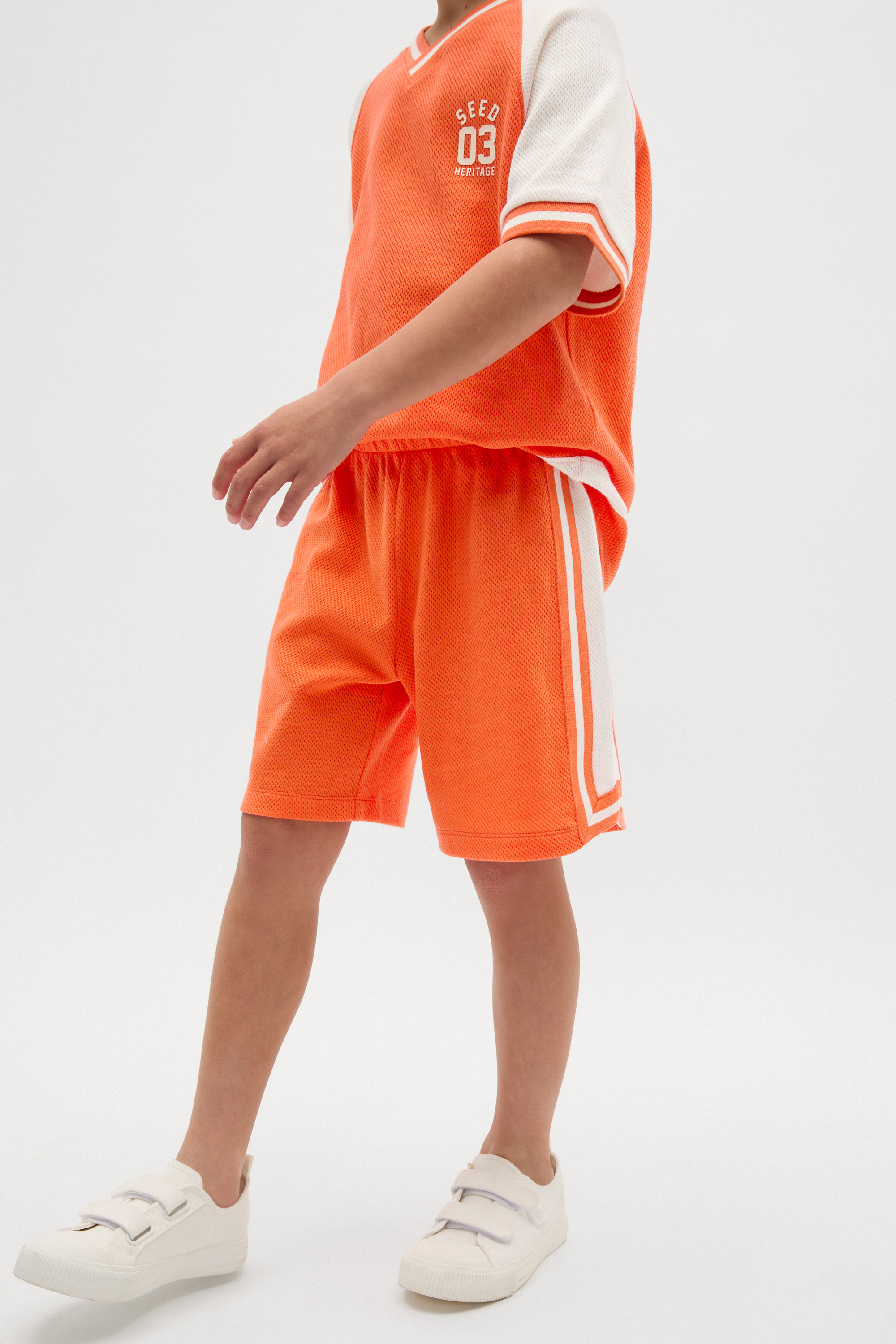 Bold and bright, these shorts are a handy pair for his active days. Crafted in premium cotton, they feature an elasticated waistband, and a contrast stripe down the side of the leg. Pair with the sporty tee to complete his head-to-toe set.