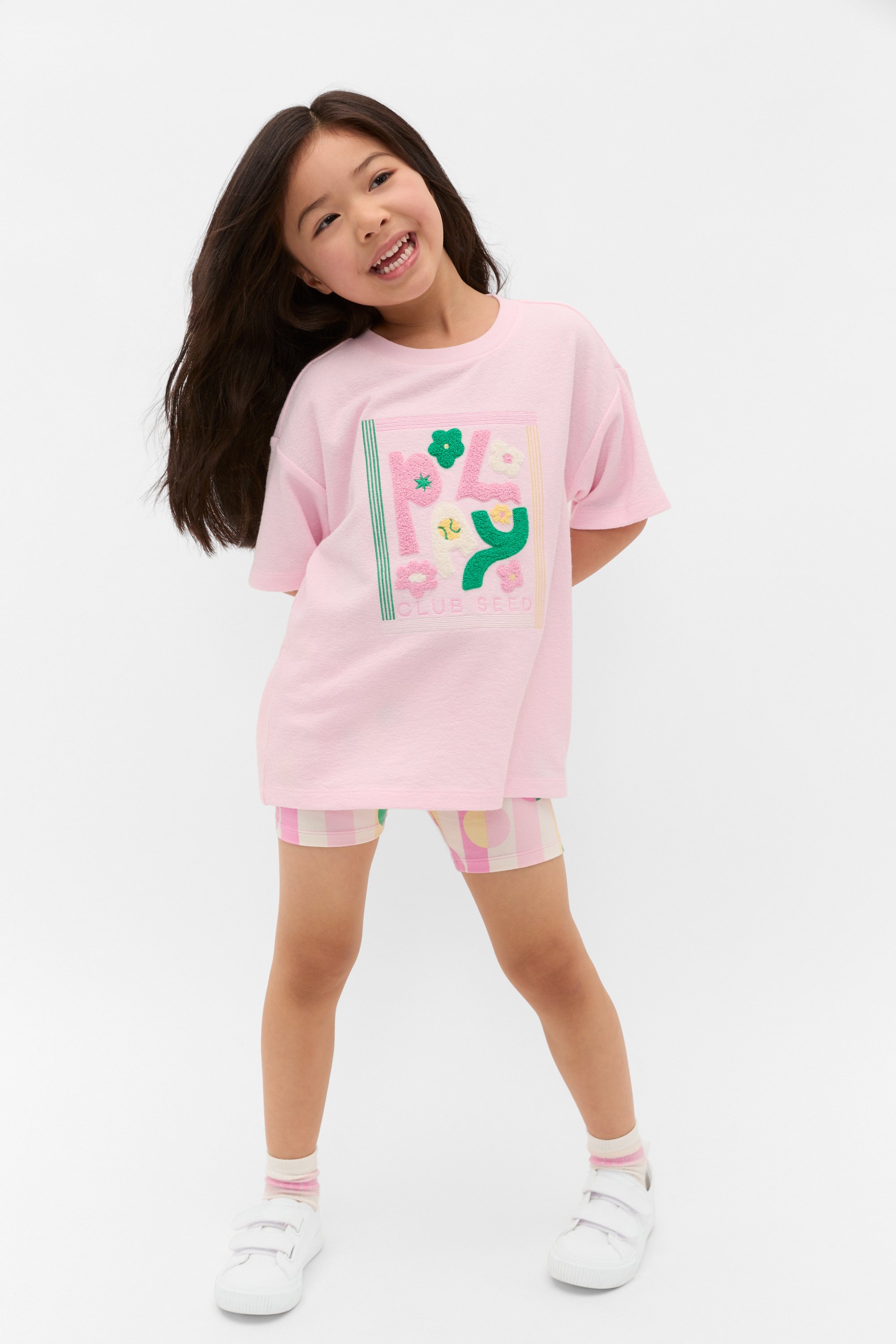 Refresh her little wardrobe with these colourful bike shorts. Crafted in a premium cotton blend with the right amount of stretch, they feature an elasticated waistband with logo webbing and a stripe and polka dot design.