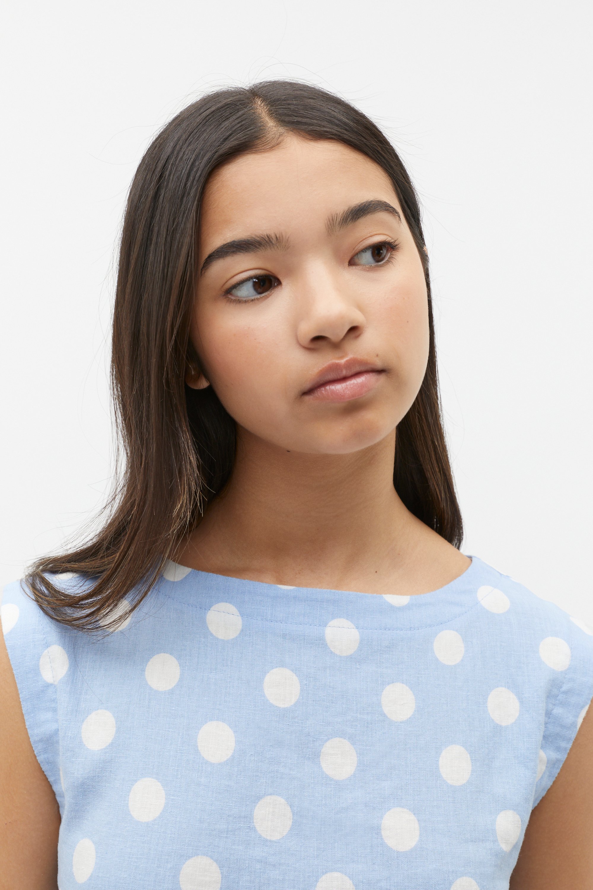 A chic and classic style for her, this top is set to be a go-to this summer. It features a round neck, sleeveless shape and a cropped length. Secures with a button at the back of the neck. Pair with the matching polka dot shorts for an effortless head-to-toe coordination.