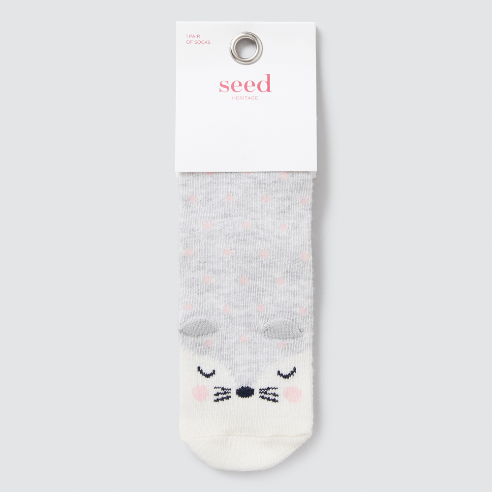 Cut from a stretchy cotton-blend, these socks feature an all-over pink spot and mouse design. Made from cotton/nylon/elastane, these socks are available in Grey Marle and in sizes 3-5, 5-8, 9-12 and 13-3.