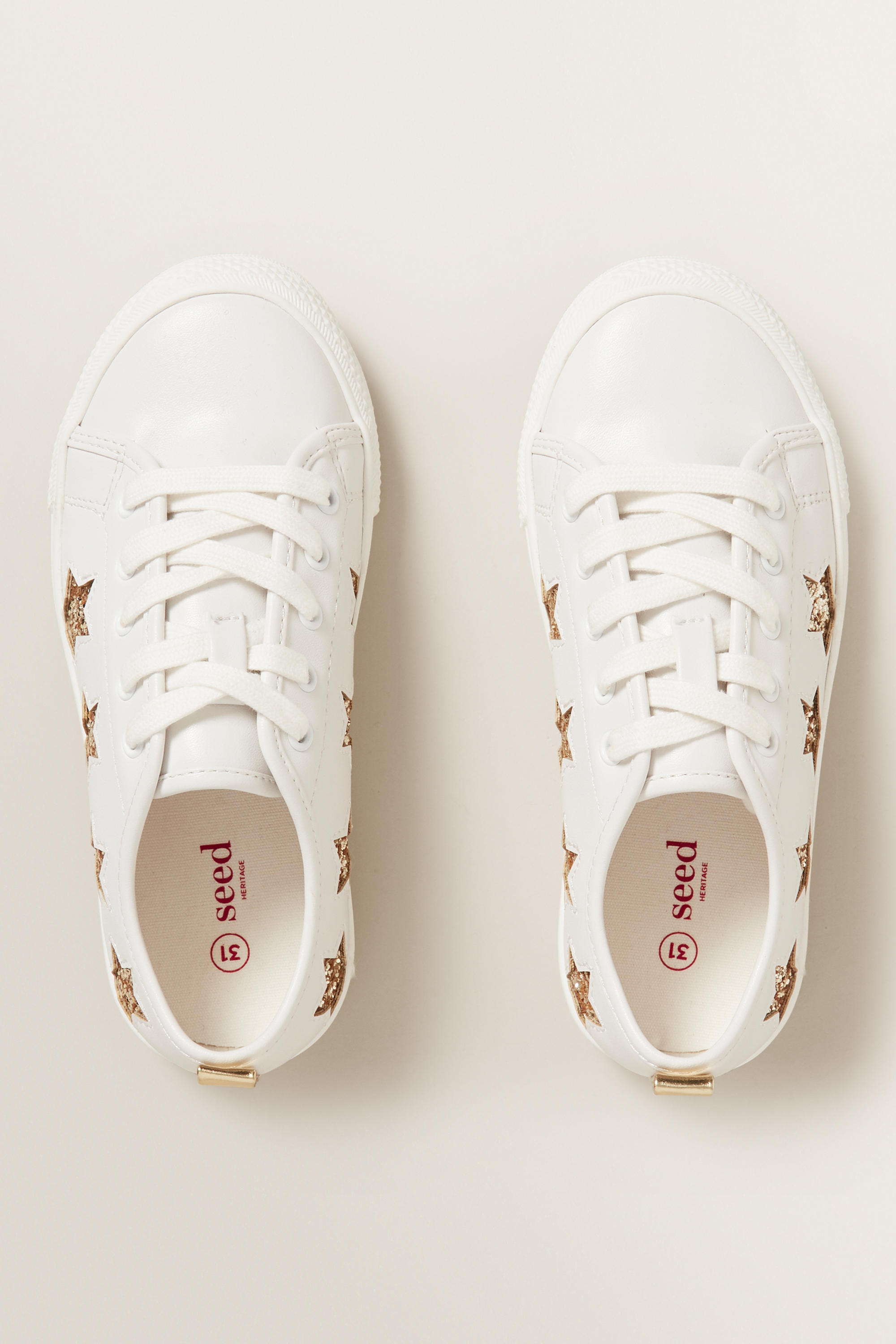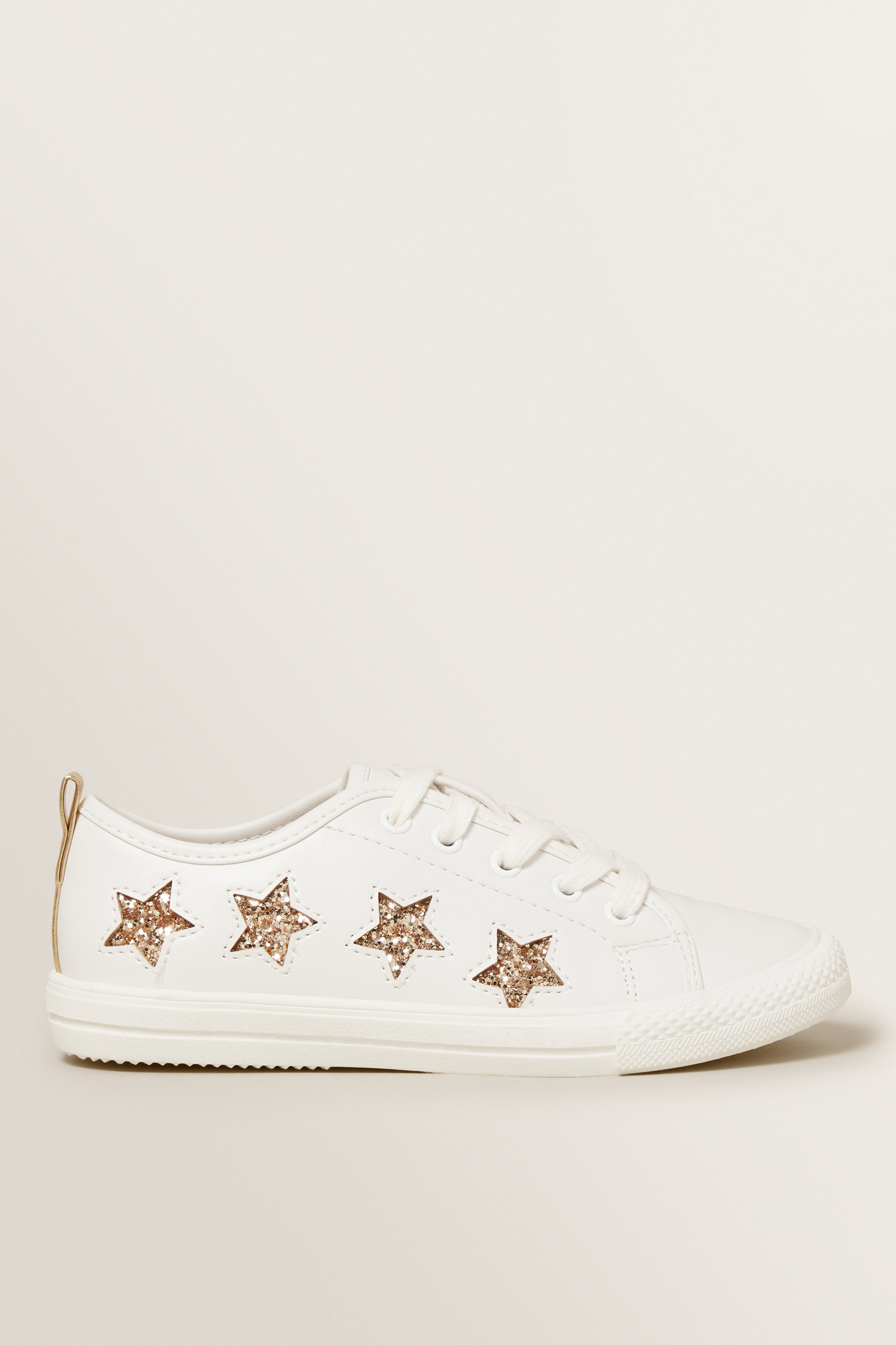 Sparkle everyday with these Star Trainers. Featuring a shimmering star print all over, they are detailed with a five eyelet lace up design, rounded rubber toe and pull tab backing for easy wearing. Made from a PU Upper and Rubber Sole they are available in sizes 26 to 35.