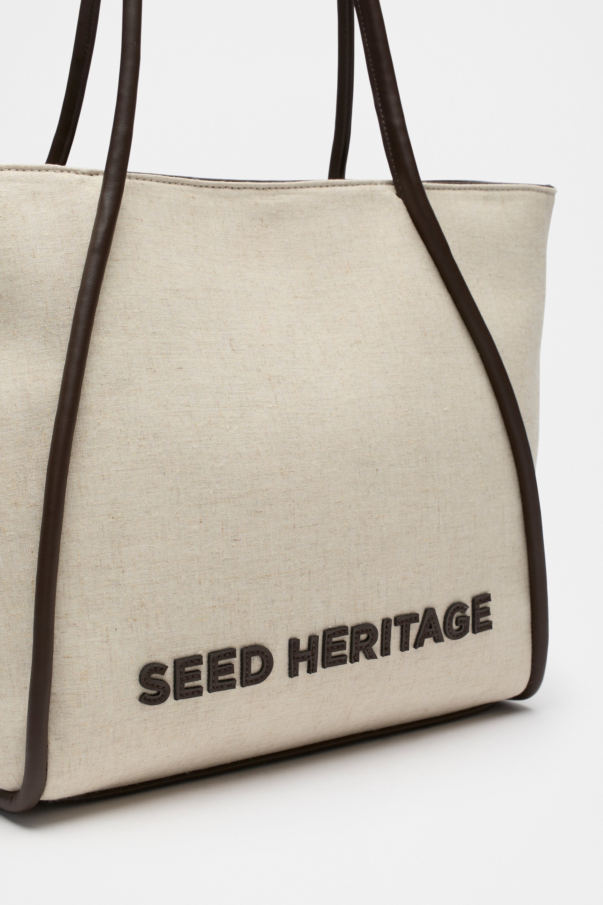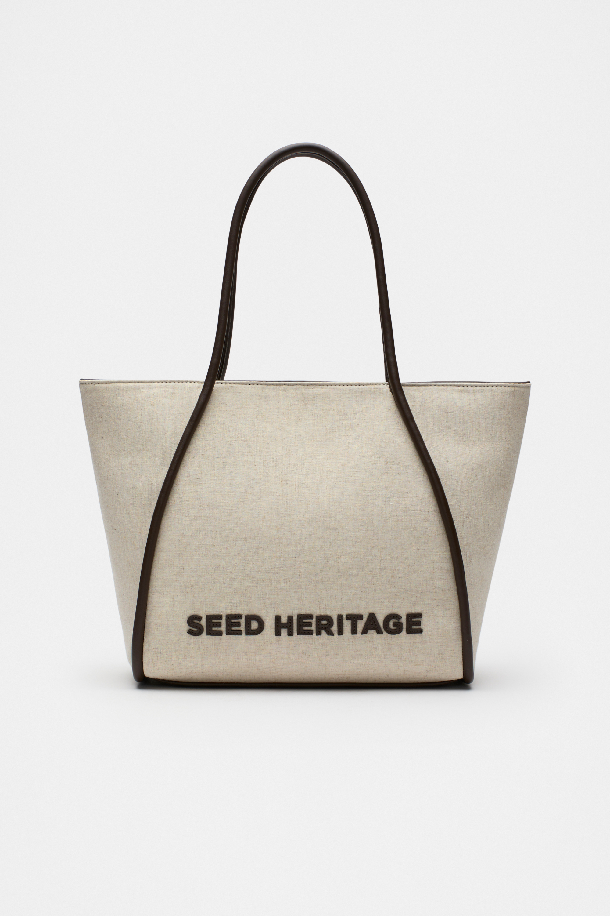An elevated take on an everyday favourite, this tote bag is generously-sized for all your daily needs. Finished in a soft fabric, it features shoulder straps, a magnetic button closure and a Seed Heritage logo.