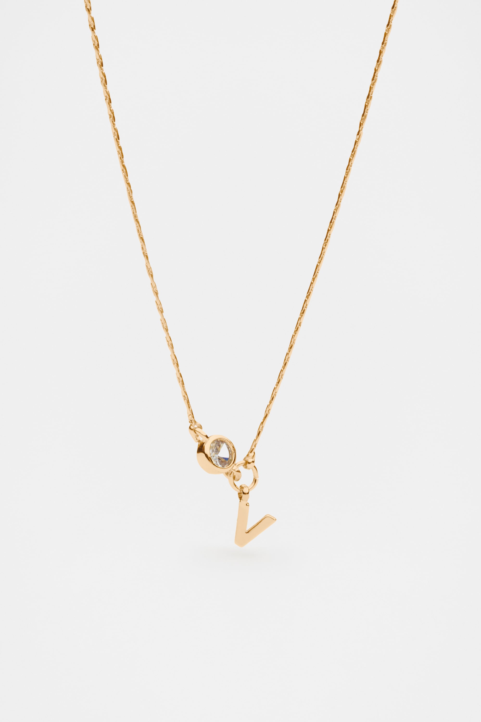 Stone Drop Initial Necklace  V  hi-res Stone Drop Initial Necklace  V  hi-res