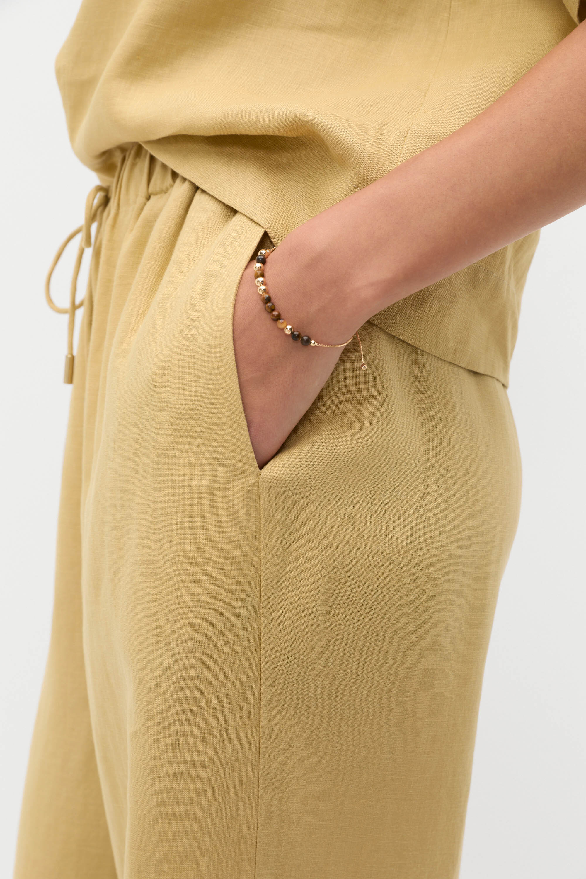 Add colour and interest to your look with this mixed stone toggle bracelet. It features a string of semi-precious tigers eye and brass beads on an adjustable toggle bracelet. Style with the coordinating tigers eye necklace or earrings for a curated feel.