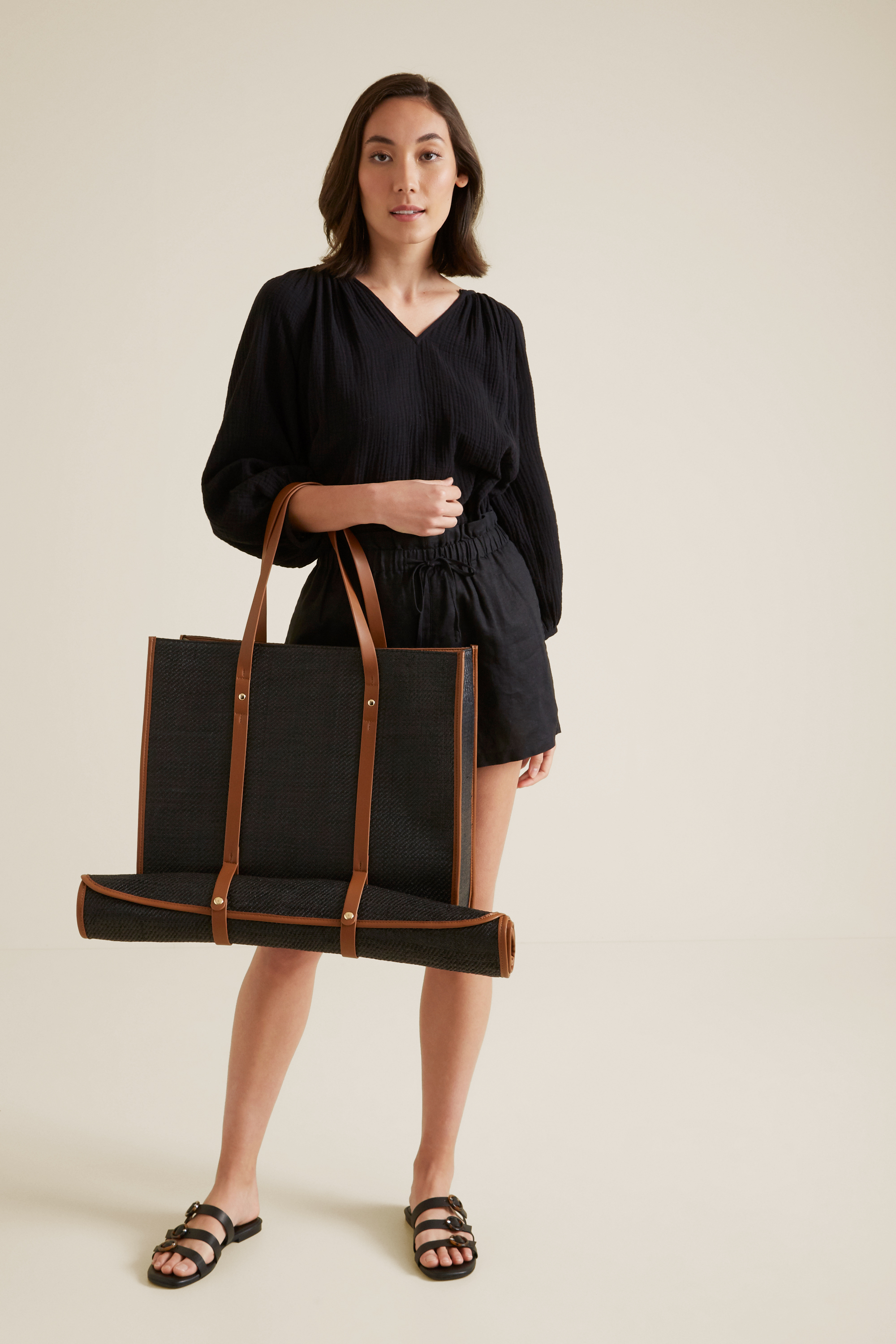 Hand-picked as a summer favourite, this Straw Beach Set is crafted from a natural raffia fabrication, fitted with leather-look trims.