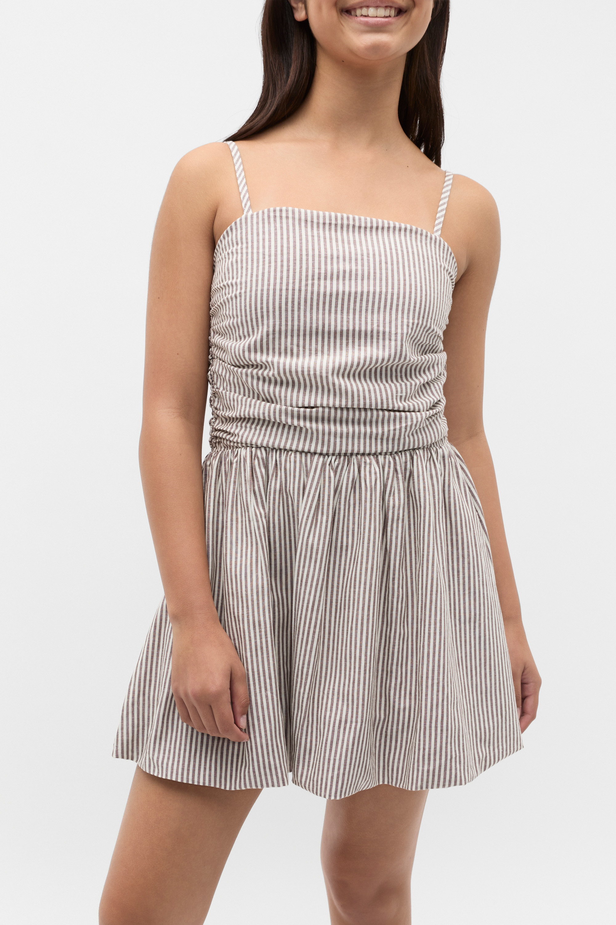Update her spring style with this chic stripe dress. Crafted in premium cotton, it's fully lined and features thin adjustable straps, a rouched bodice with a shirred back, an elasticated hem for a bubble shape skirt and a classic stripe design.