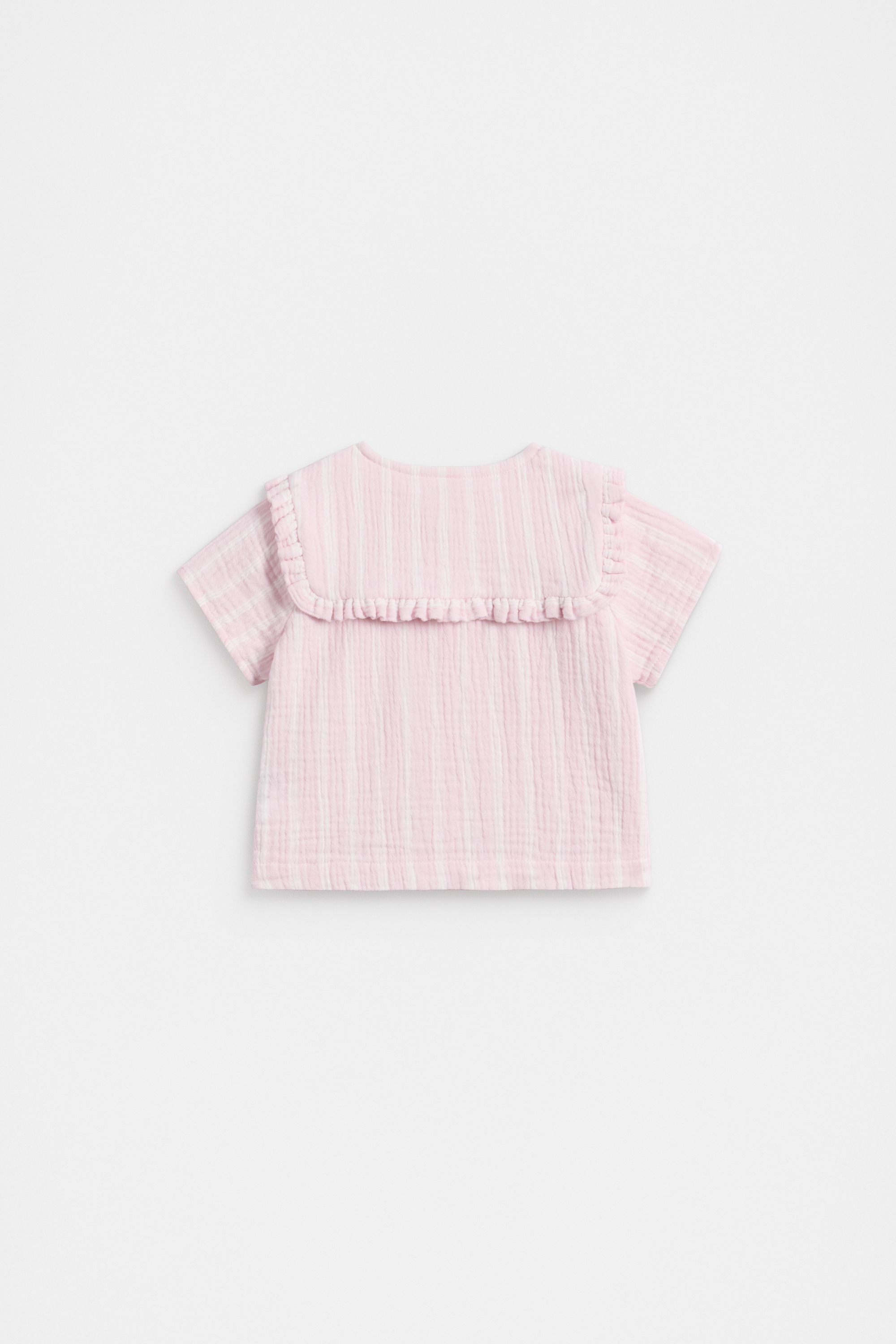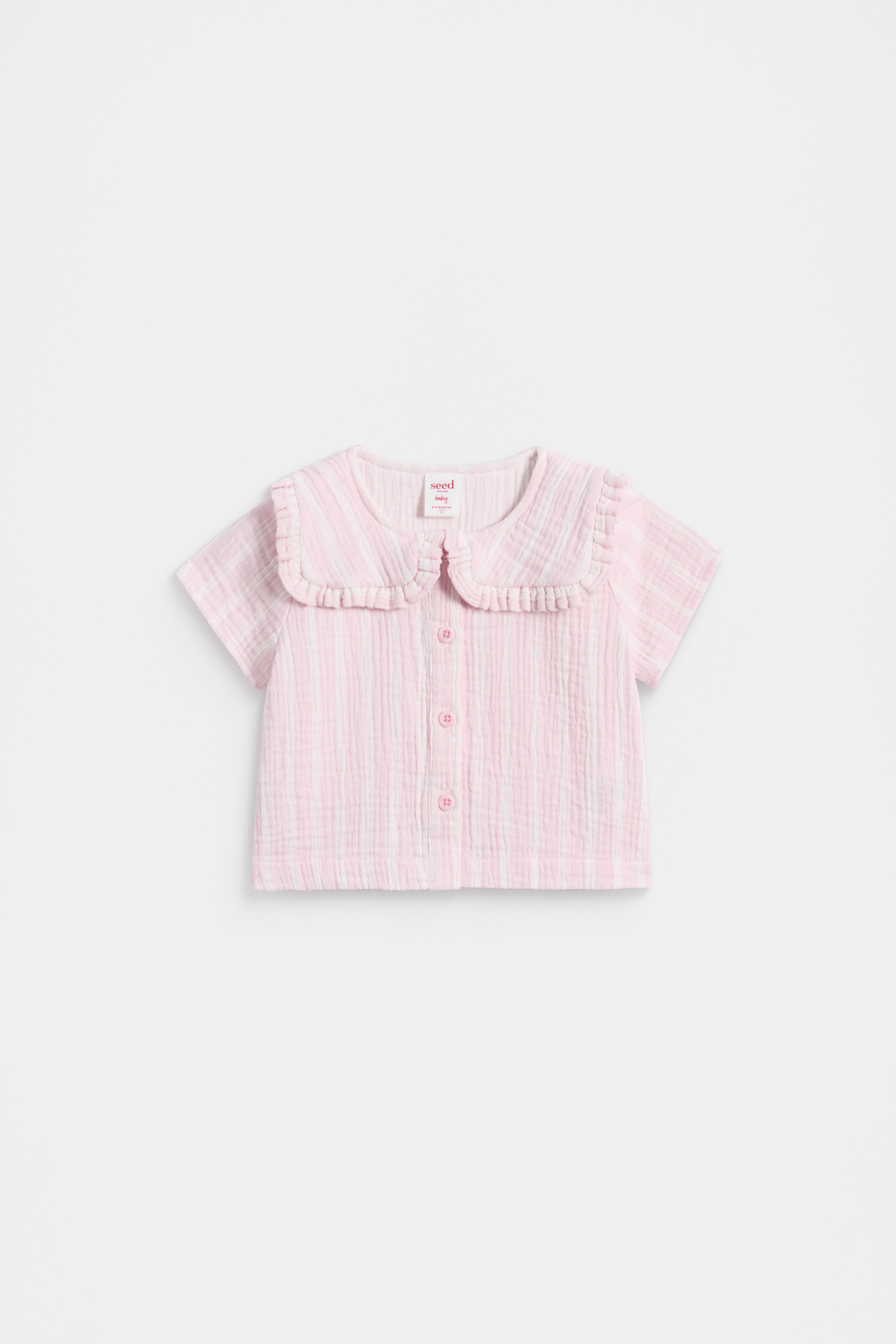 An adorably sophisticated style for her little wardrobe, this shirt features a statement collar with a frill detail and a classic stripe design. Crafted in a lightweight premium cotton, it's perfect for summer.