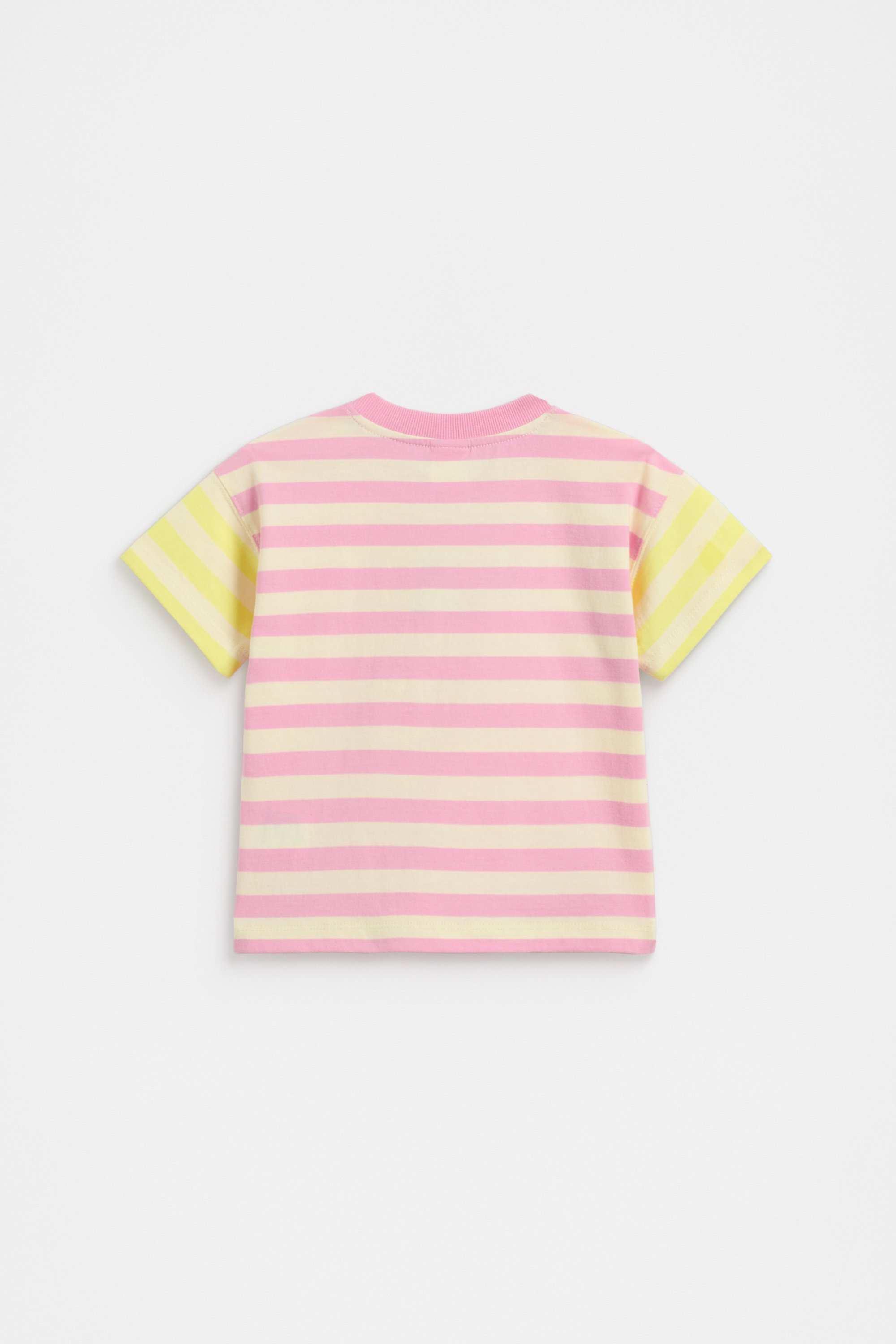 In a cheerful pastel palette, this tee is ready to be worn on repeat. Crafted in premium cotton, it features a round neck, short sleeves, a colourblock stripe design and shoulder snaps for easy changes.