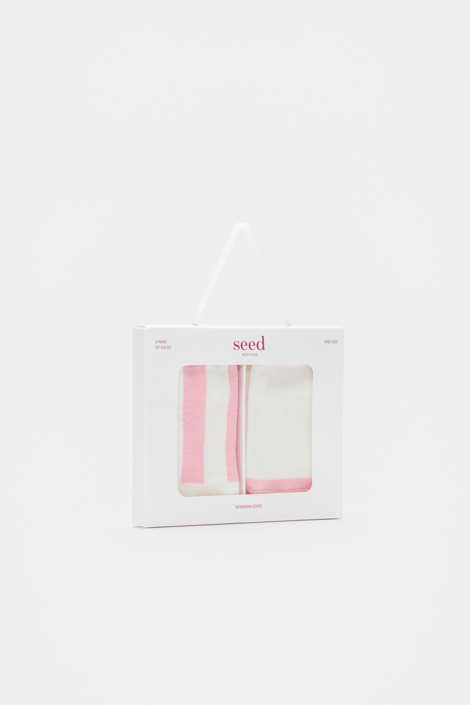 Stripe Colourblock Sock 2 Pack  Pop Pink  hi-res Stripe Colourblock Sock 2 Pack  Pop Pink  hi-res