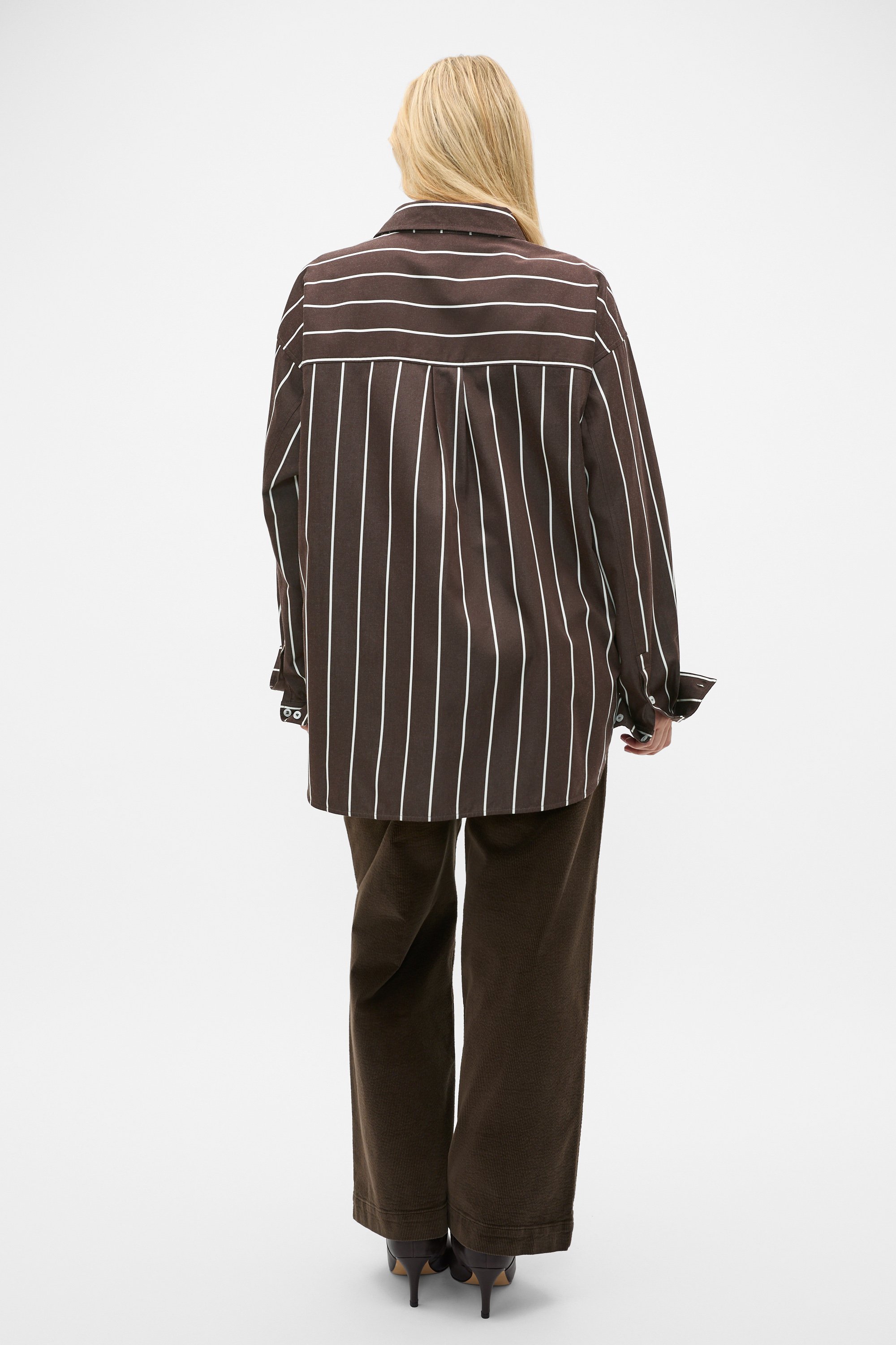 Stripe Cotton Oversized Shirt  Coffee Bean Stripe  hi-res