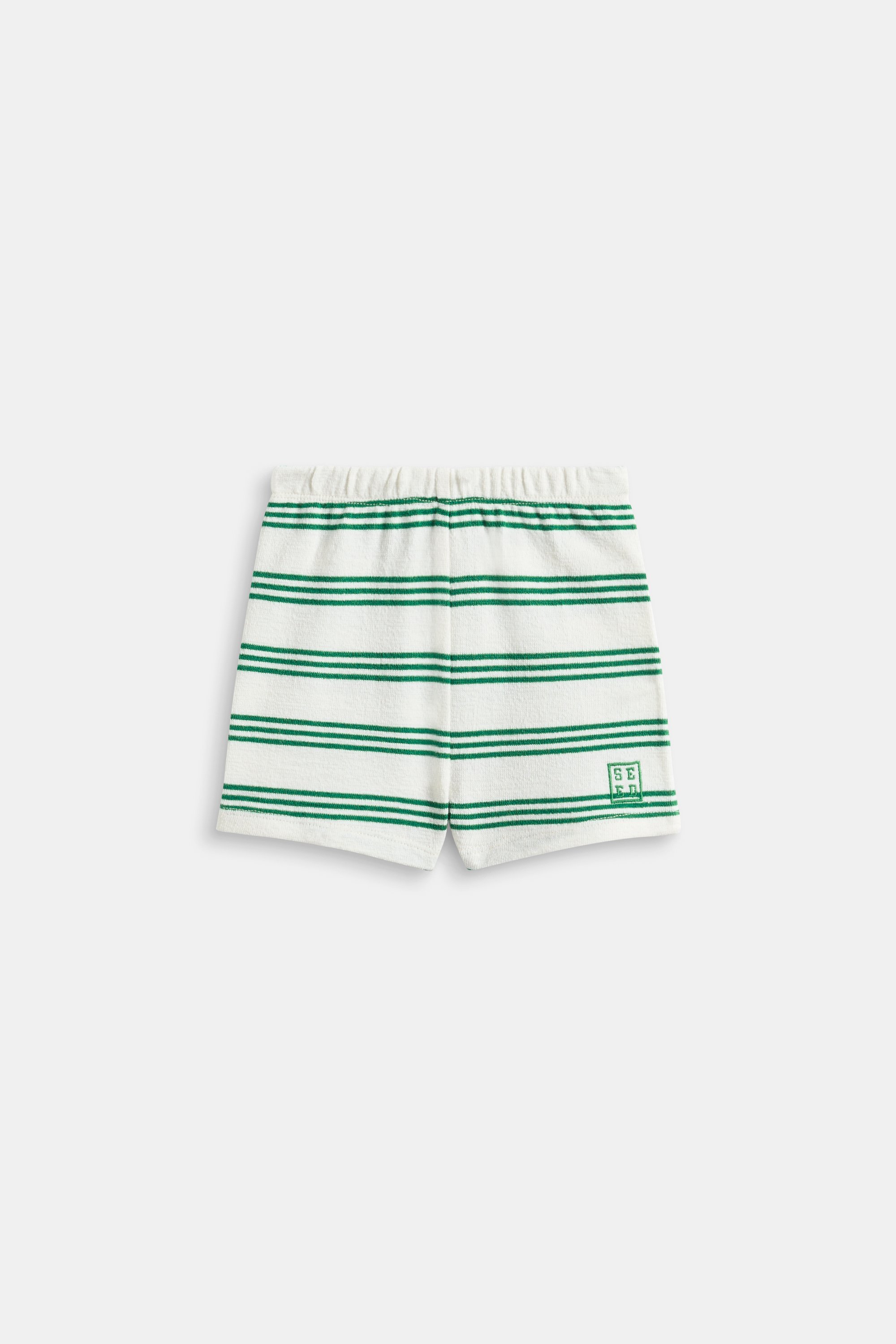 So sweet and comfy, these little shorts are perfect for everyday wear. Crafted in a soft cotton blend, they feature an elasticated waistband, and a stripe design. Pair with the matching sweater for the cutest head-to-toe set.