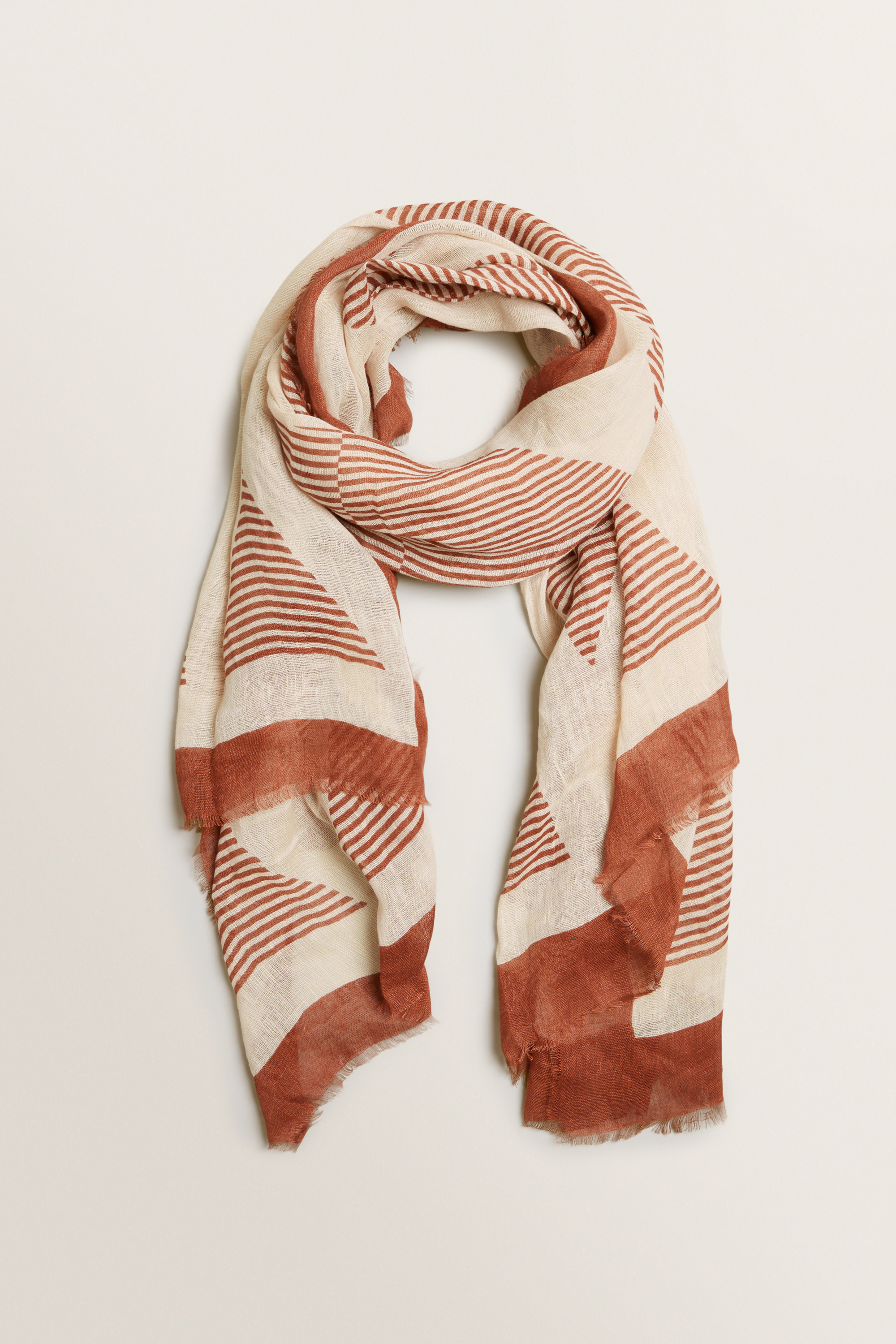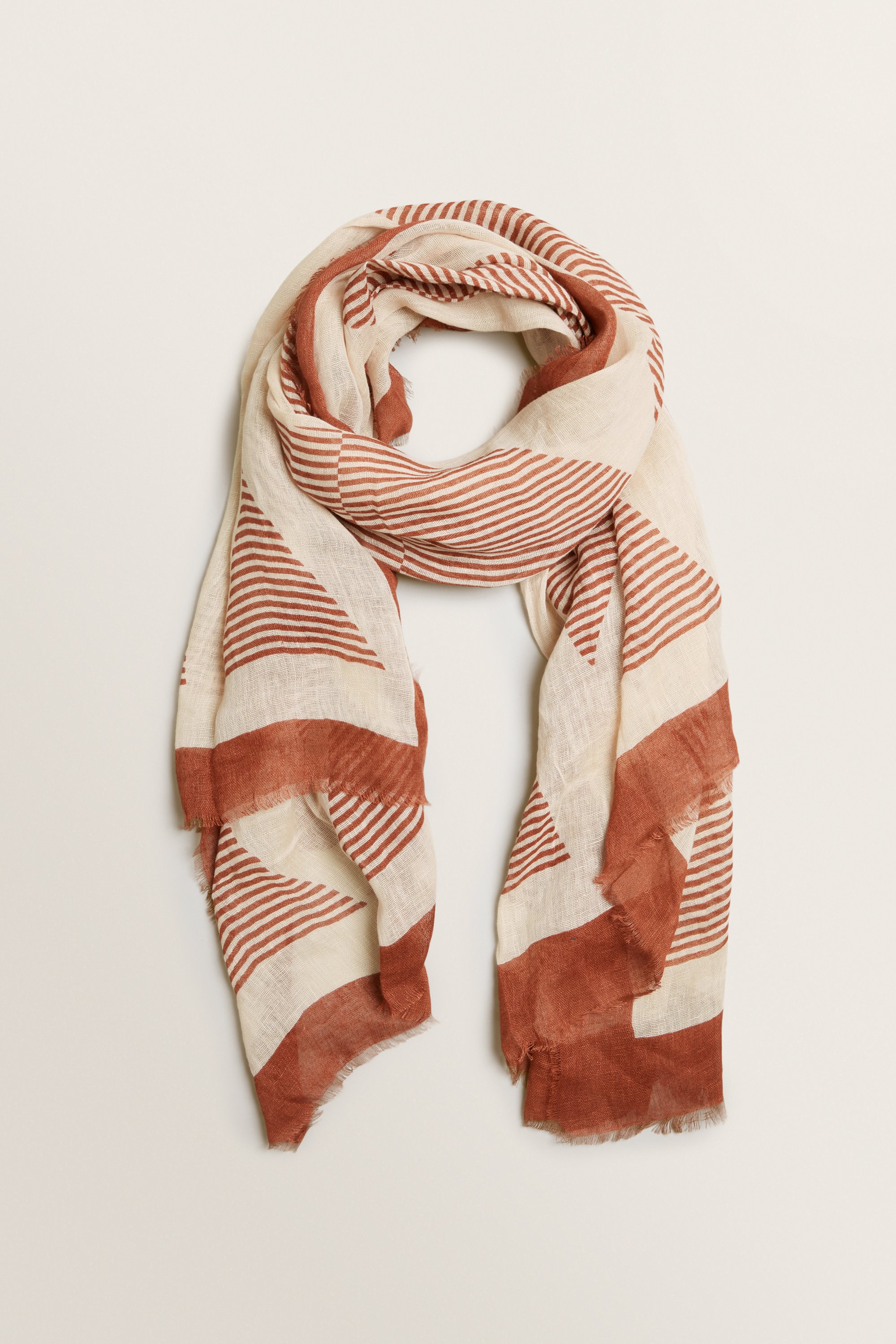 Designed in a rich Moroccan Red colourway, this Stripe Geo Scarf is made for lightweight layering this season.