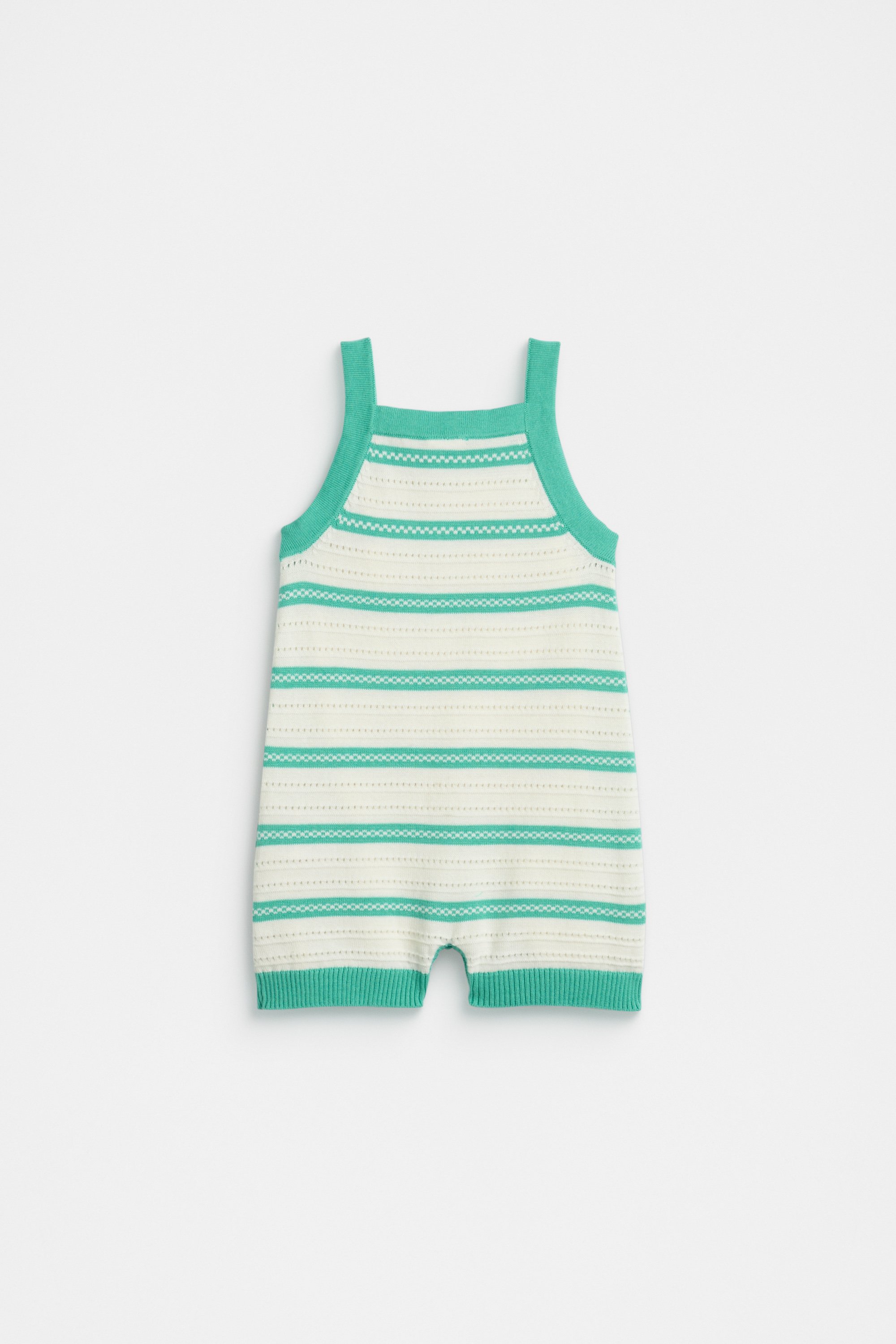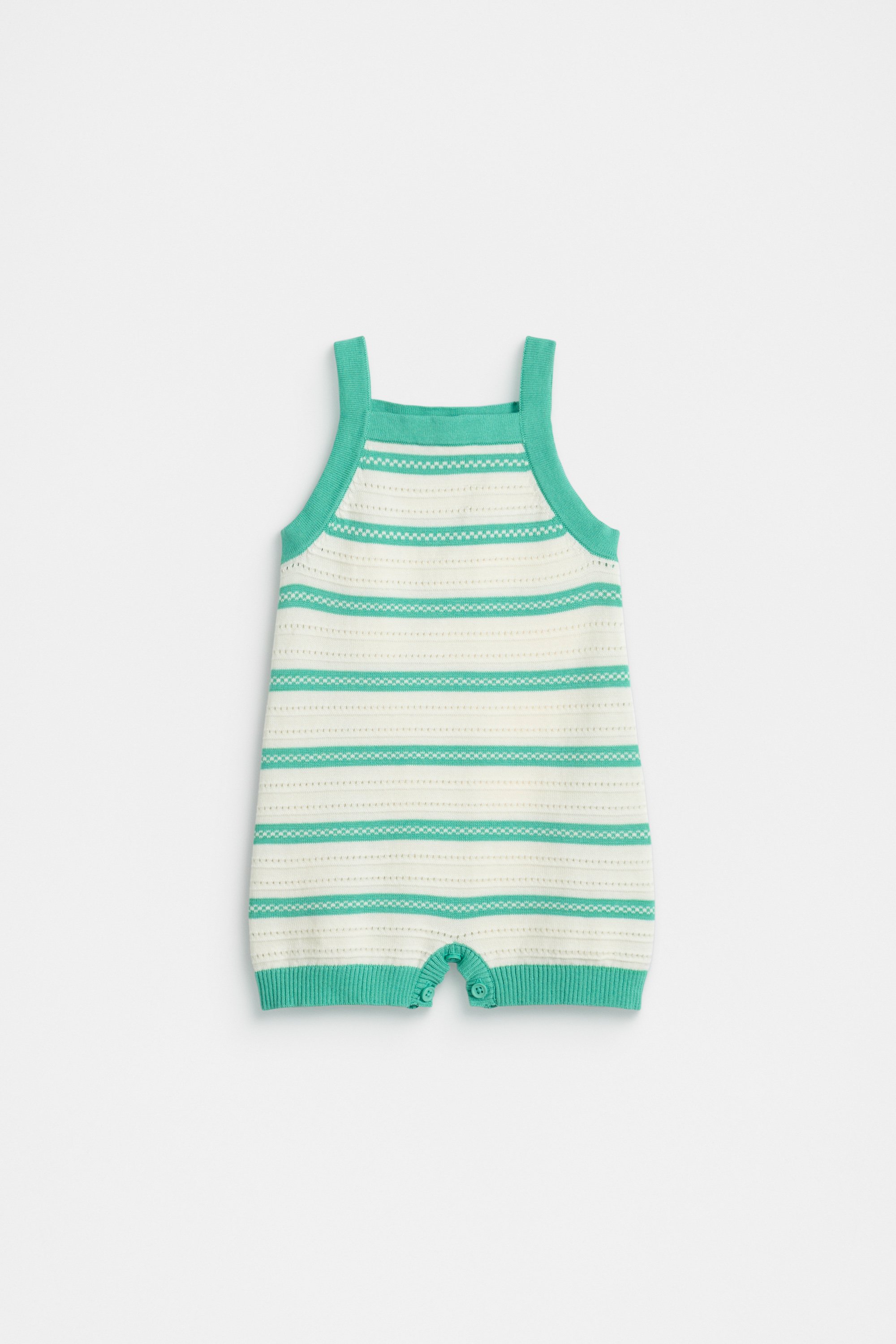 Finished in the cutest candy stripe, this knit romper is an adorable addition to their little wardrobe. Crafted in a lightweight cotton blend with a little stretch, it features thin straps and gusset buttons for quick and easy changes.