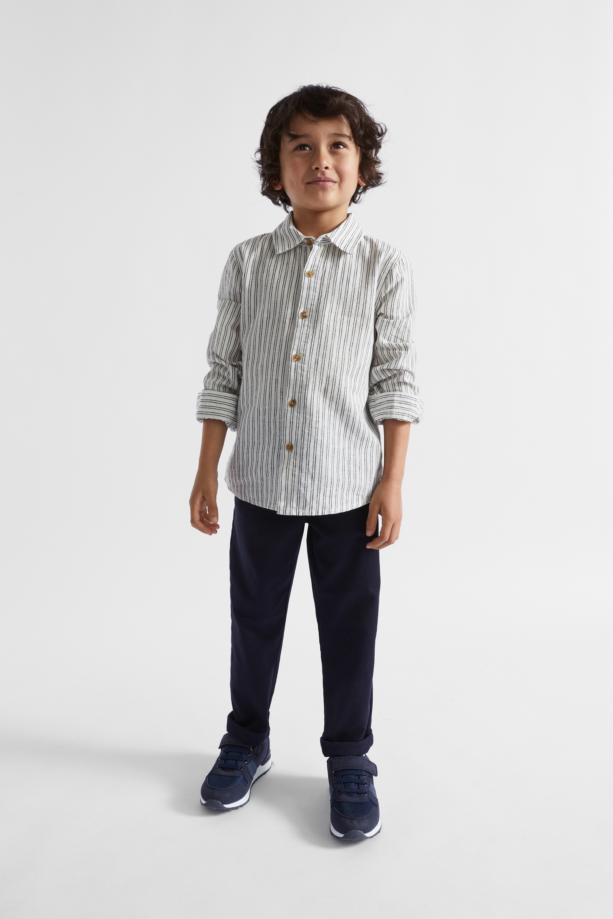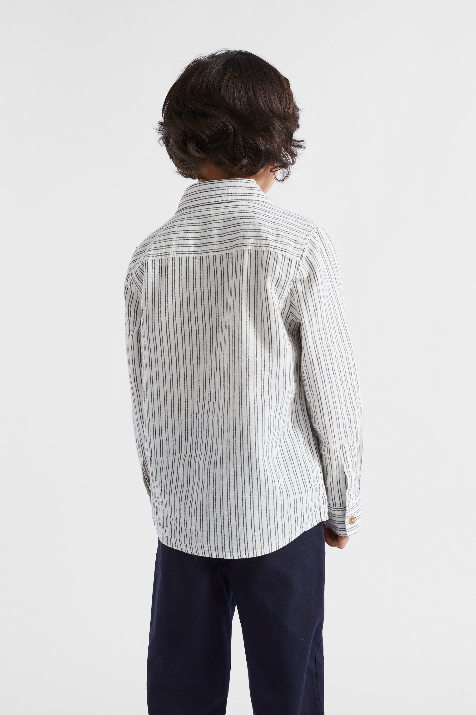 In a premium blend of linen and cotton, this shirt is a classic addition to his wardrobe. It features a collar and a button front, with narrow stripes to add a little extra style. Ideal for pairing with chinos or denim.