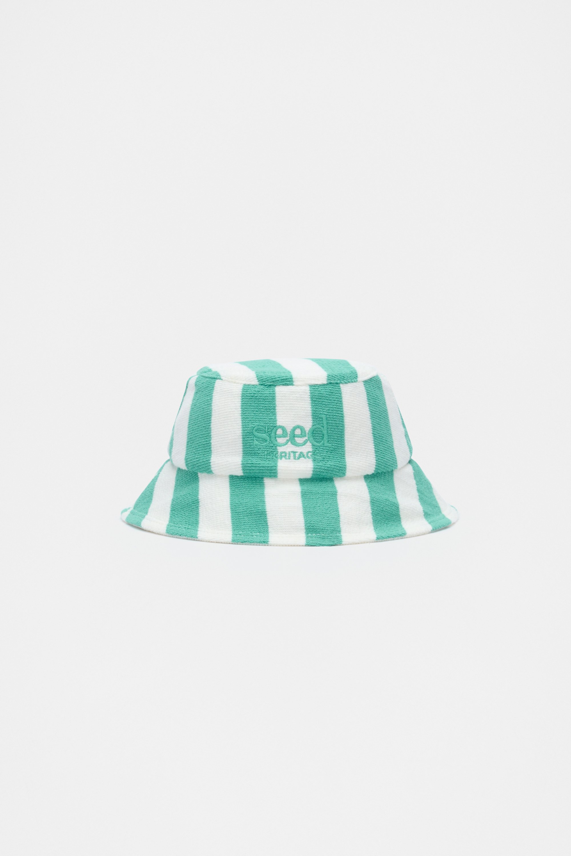 Perfect for little heads on sunny days, this bucket hat features a bold and bright stripe design. Crafted in a soft cotton blend.