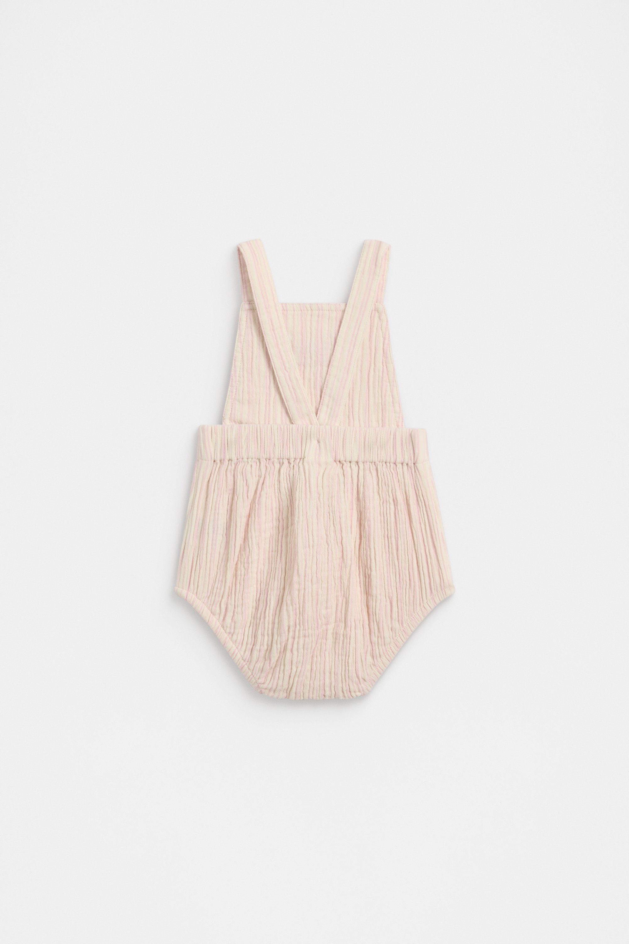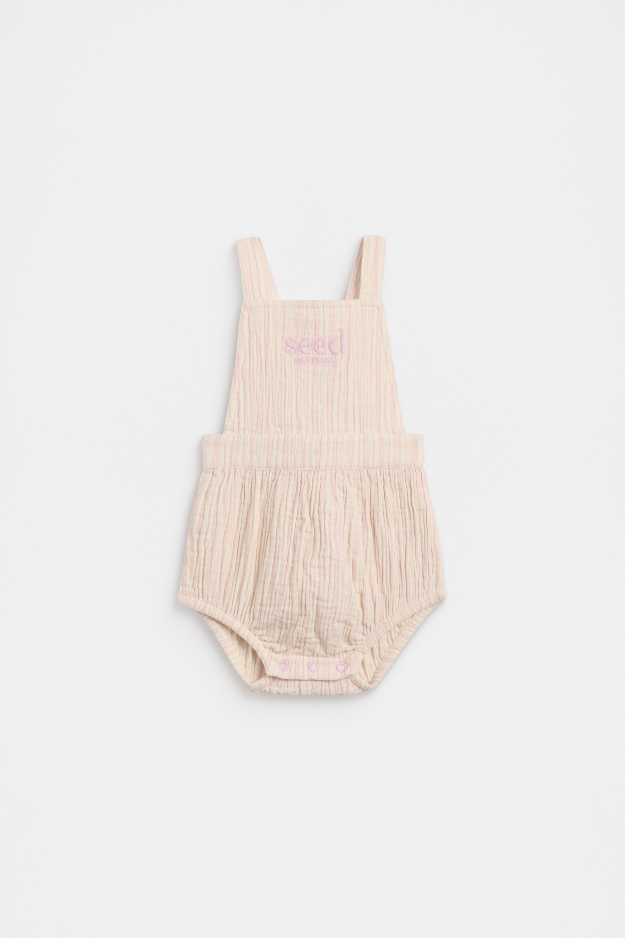This adorable romper is comfortably lightweight for the summer and guarantees head-to-toe sweetness. Crafted in premium cotton, it features adjustable straps that cross over at the back, an elasticated band at the waist, elasticated leg openings, and secures with snaps at the gusset. It also features a stripe design.