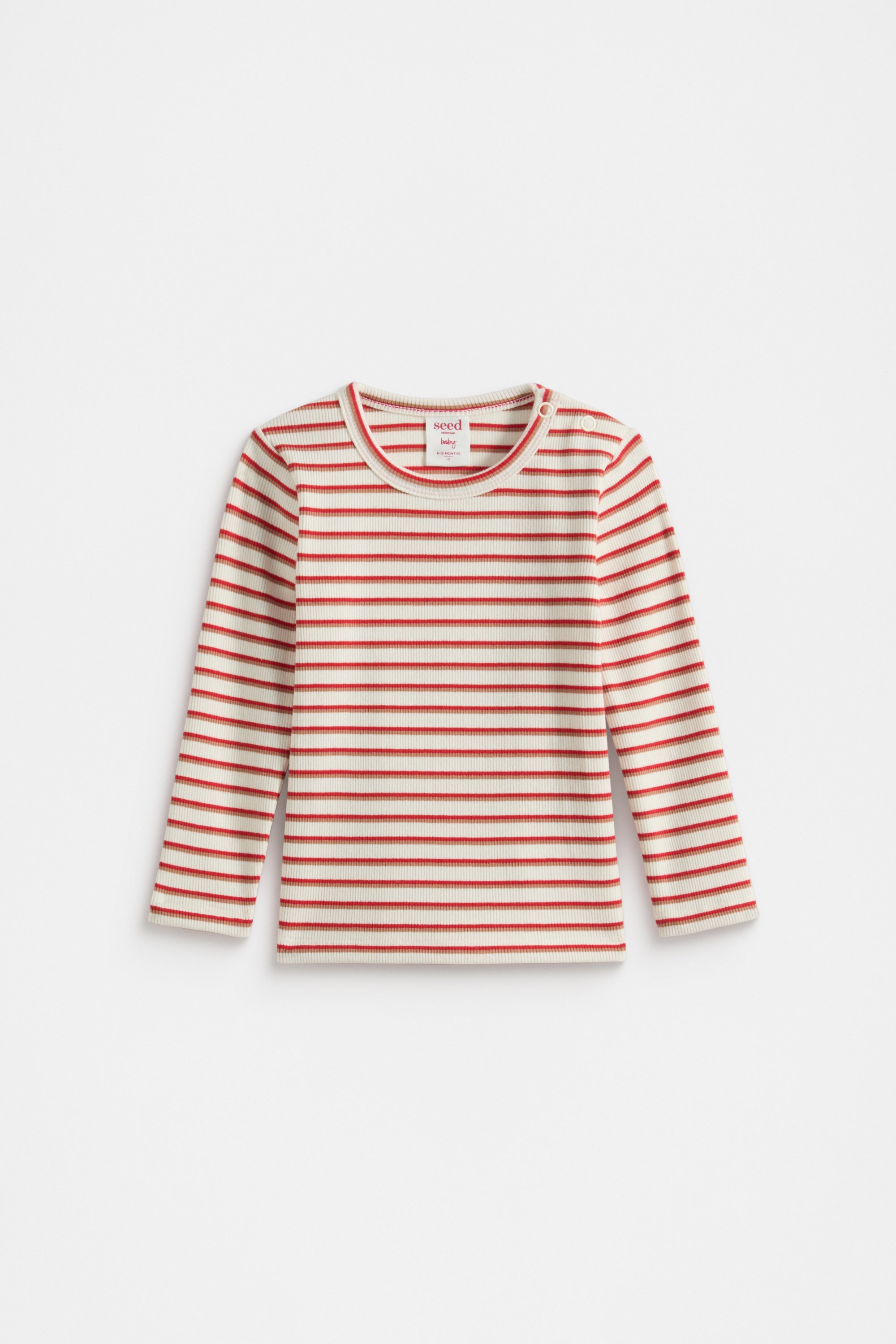 Super soft and stretchy, this top is a handy style for her little wardrobe. Crafted in premium cotton, it features a round neck, long sleeves, a stripe design and a rib finish. For quick and easy changes, it has snaps at the shoulder.