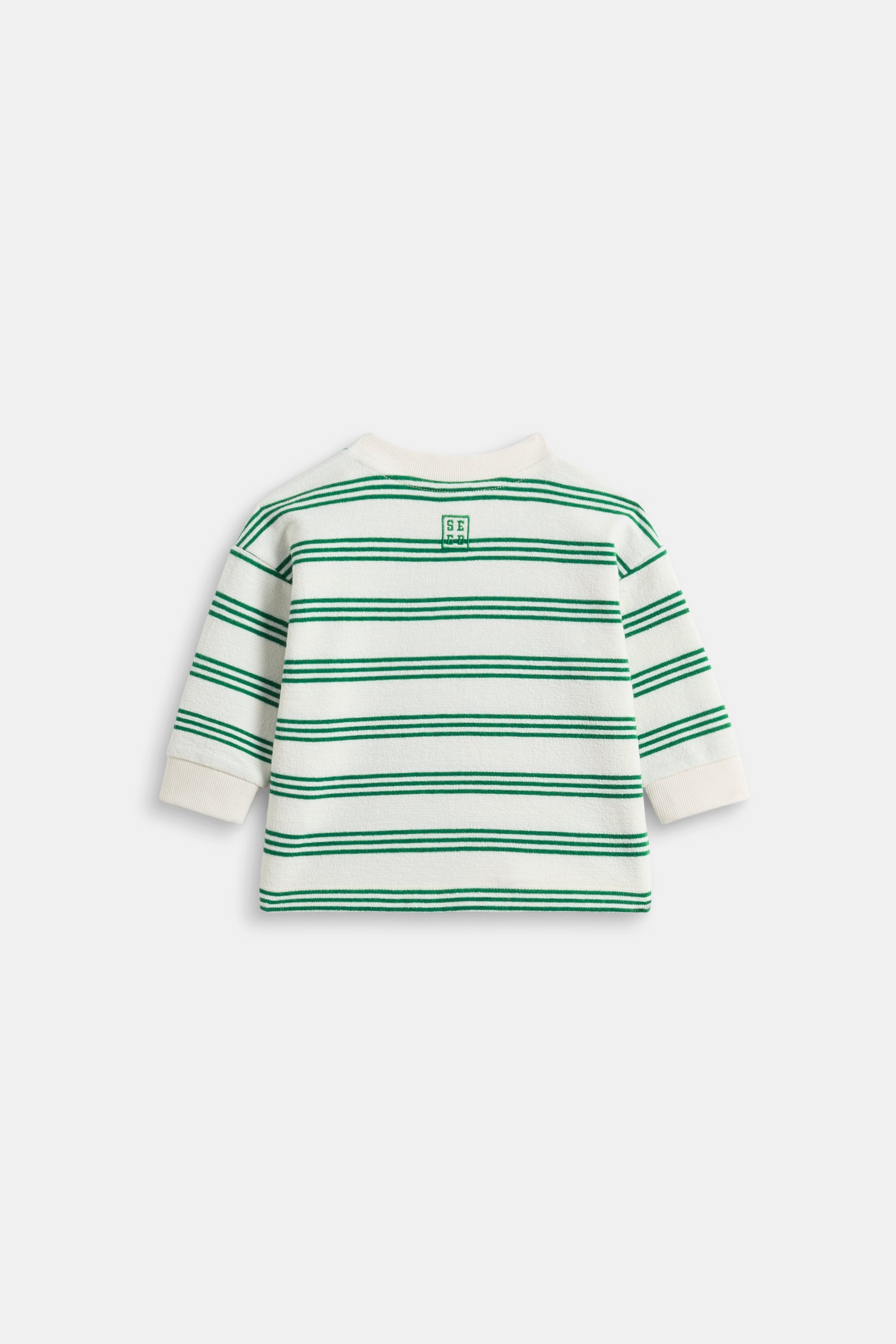 An lightweight style for everyday wear, this jumper is comfortable and cute. Crafted in a soft cotton blend, it features a round neck, long sleeves and a timeless stripe design. For the sweetest head-to-toe set, pair with the matching stripe shorts.