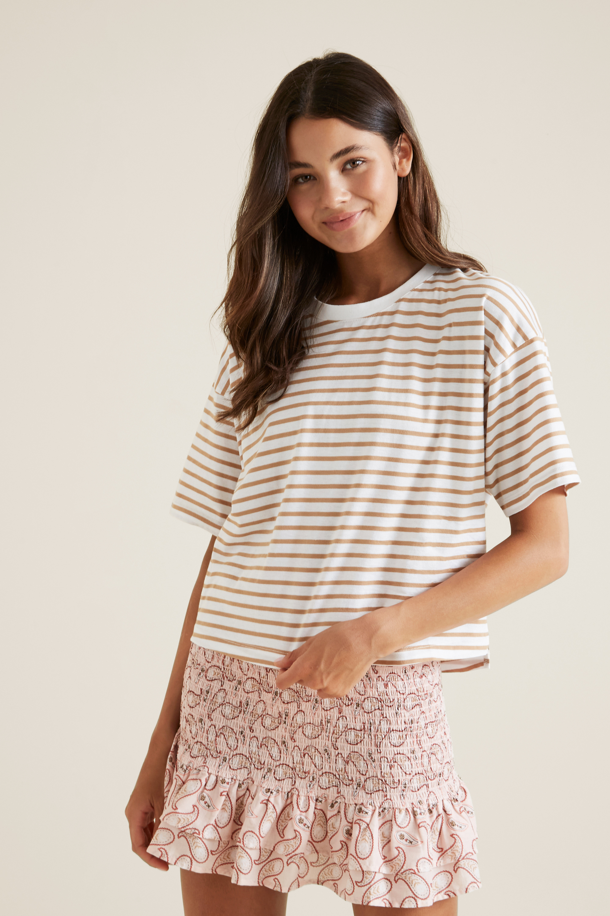 This Striped Top is made from a soft 100% cotton fabric, featuring a crew neckline, short sleeved and relaxed fit.