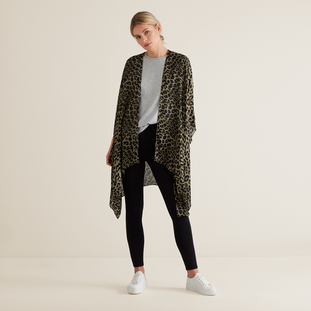This Summer Poncho is a versatile layering wardrobe essential, that will seamlessly take you from day to night. It features a lightweight knit, made from a Viscose blend. Wear it wrapped, belted or drape naturally across the body for a relaxed look. This Summer Poncho is printed with an animal design and available in one size.