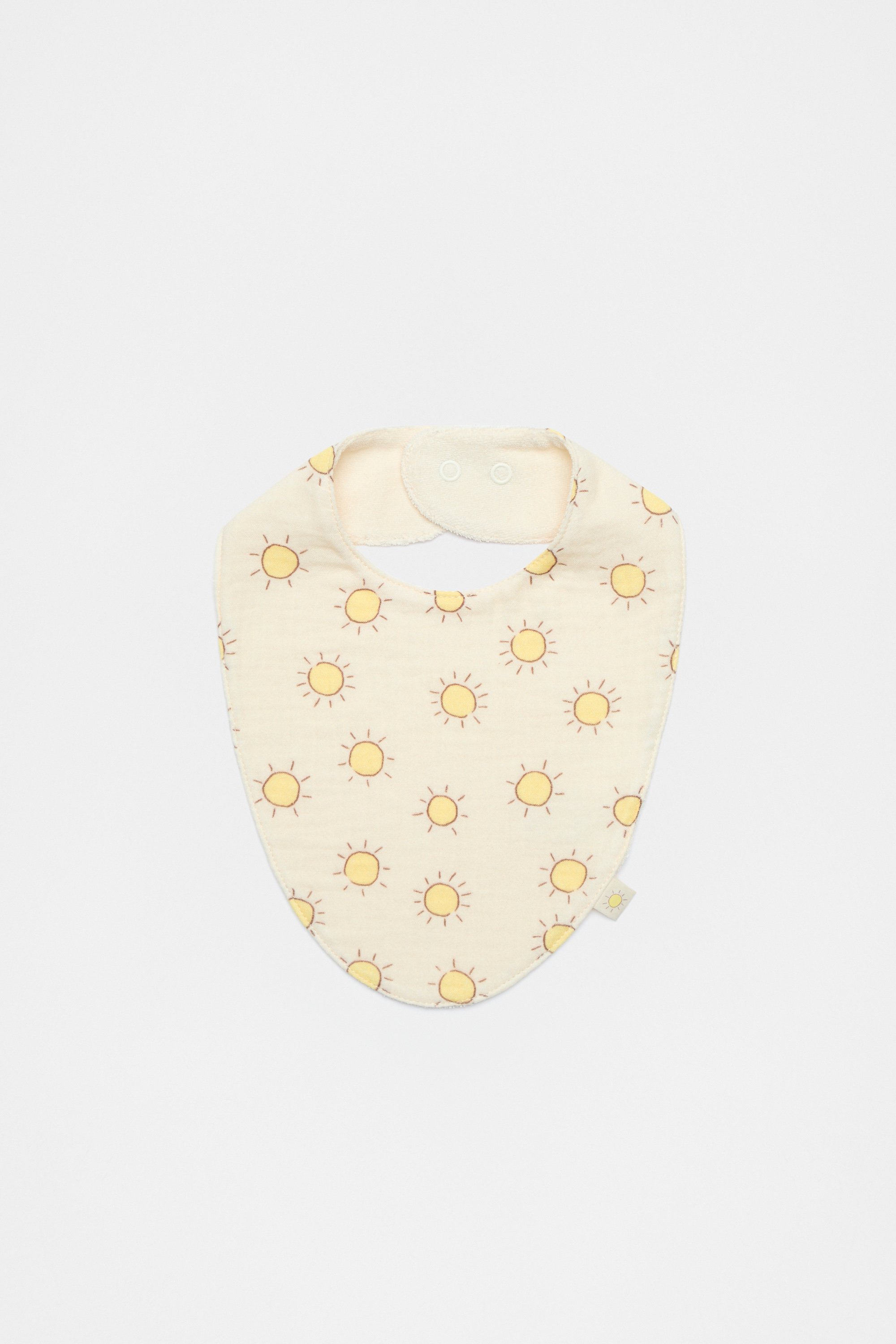 Handy for any newborn, this adjustable bib is crafted in premium cotton and features a cheerful sun pattern. Pair with the matching sunny styles for the perfect newborn gift.