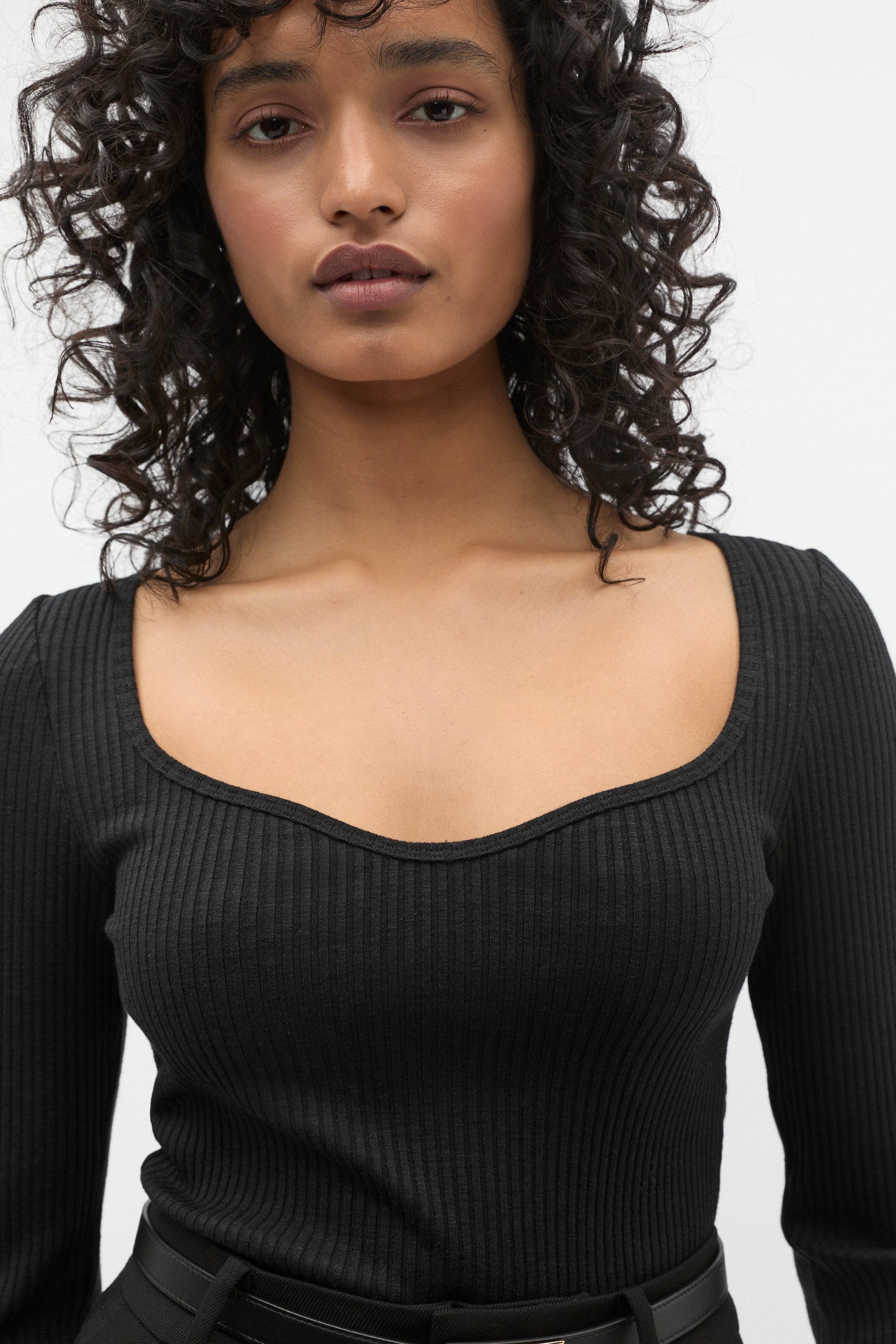 Designed to elevate your everyday wardrobe, this top features a softly feminine sweetheart neckline. Finished in a rib, it has long sleeves and a comfortable stretch fit, offering versatile dressing.