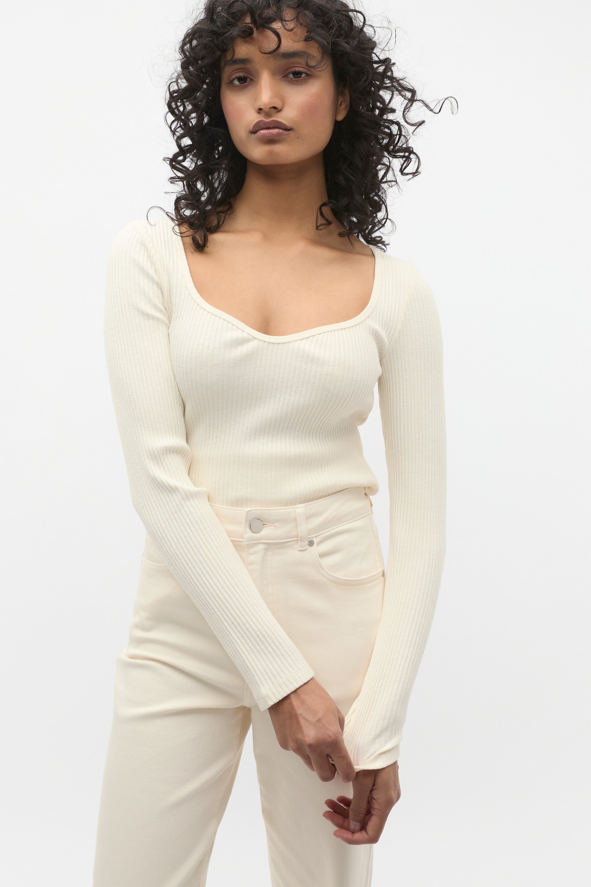 Designed to elevate your everyday wardrobe, this top features a softly feminine sweetheart neckline. Finished in a rib, it has long sleeves and a comfortable stretch fit, offering versatile dressing.