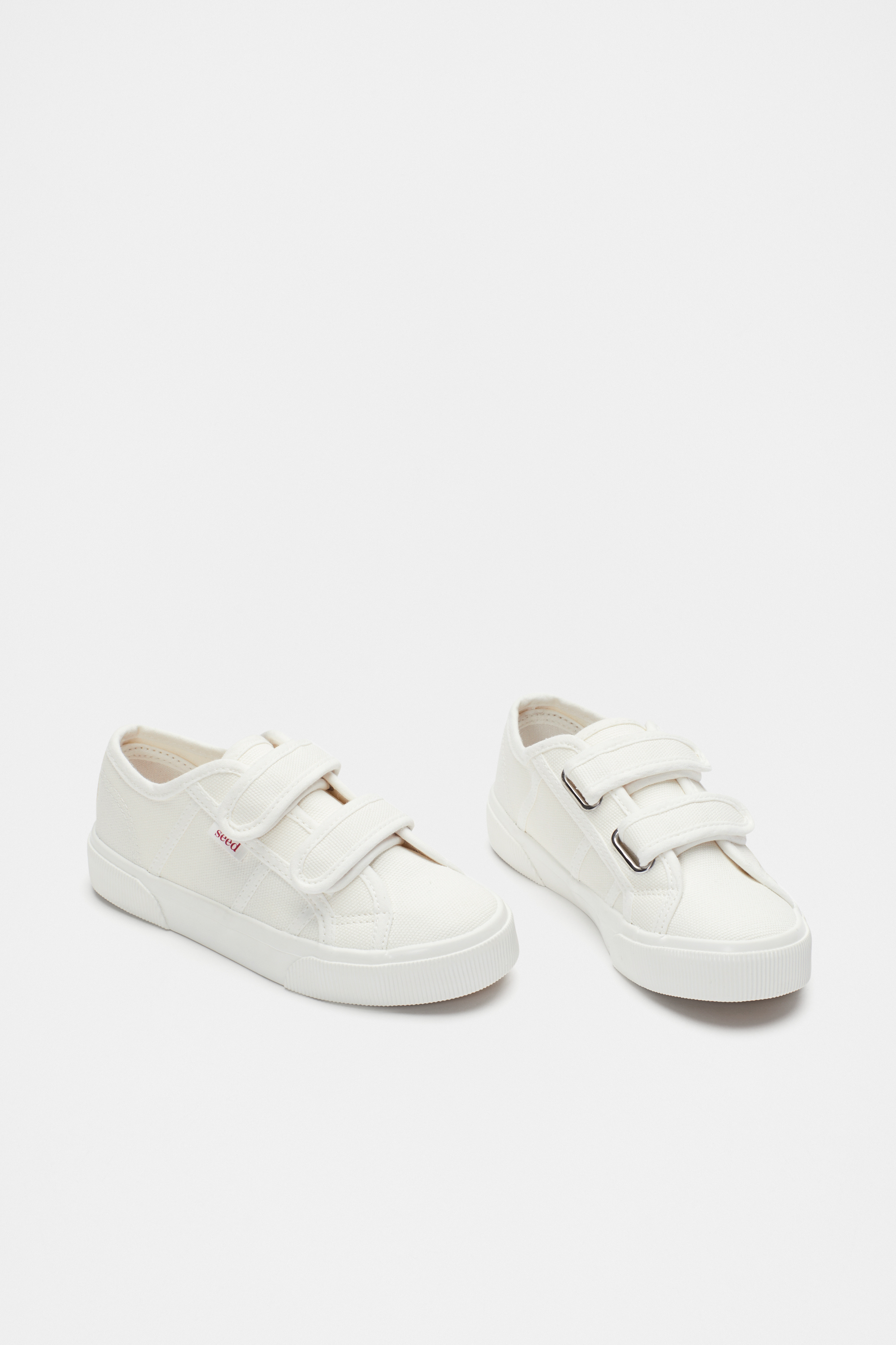 These classic canvas trainers are ready for their next adventure. They feature two tabs with hook and loop closures, and seam details.