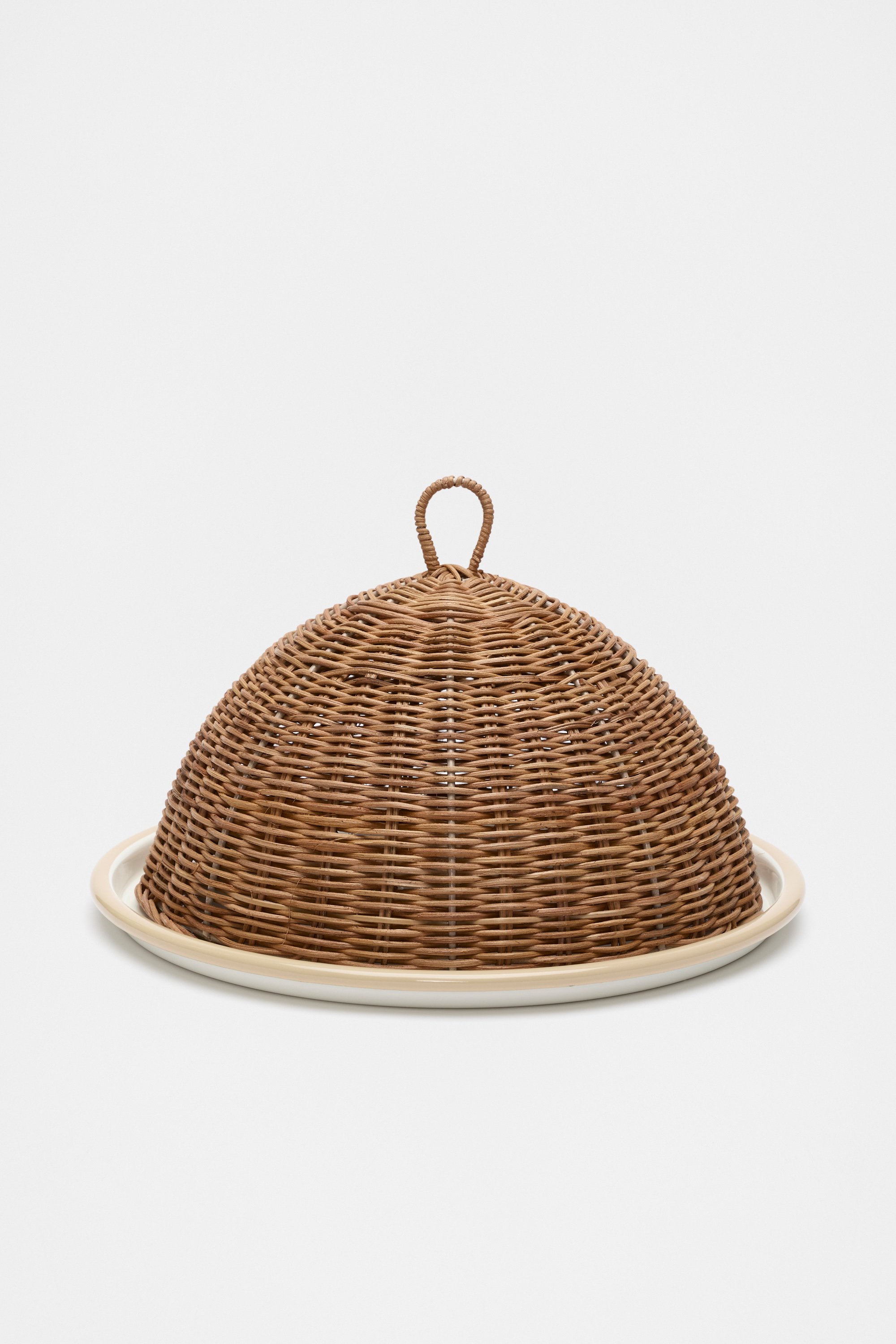 With a textured finish and a natural feel, this statement rattan cloche elevates your table setting. Especially practical for outdoor dining, it's designed to sit over our enamel serving tray and features an easy-to-use loop handle.