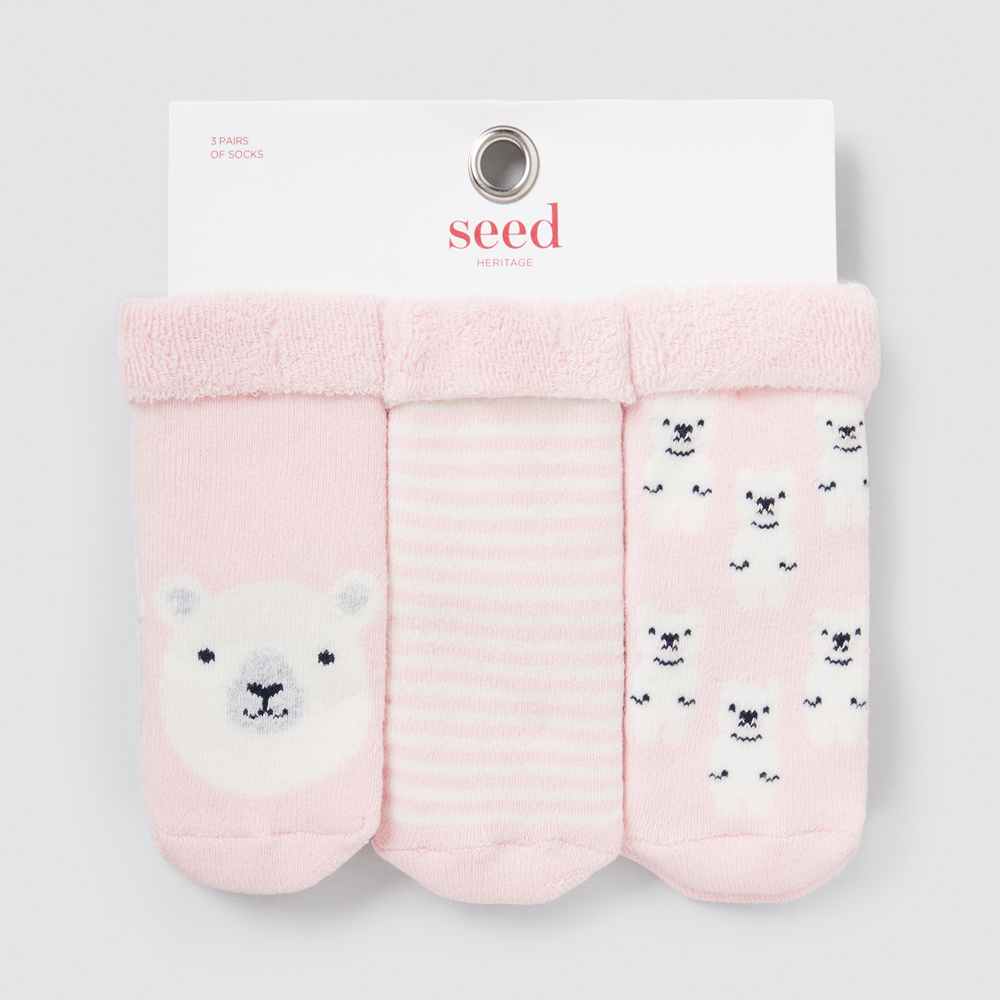 This 3-pack of bear socks will be a super cute addition to their outfit. Made from cotton/nylon/elastane, these socks are available in Marshmallow, Grey and Blue and in sizes 3-6, 6-12. Please wash as per care instructions found on garment.