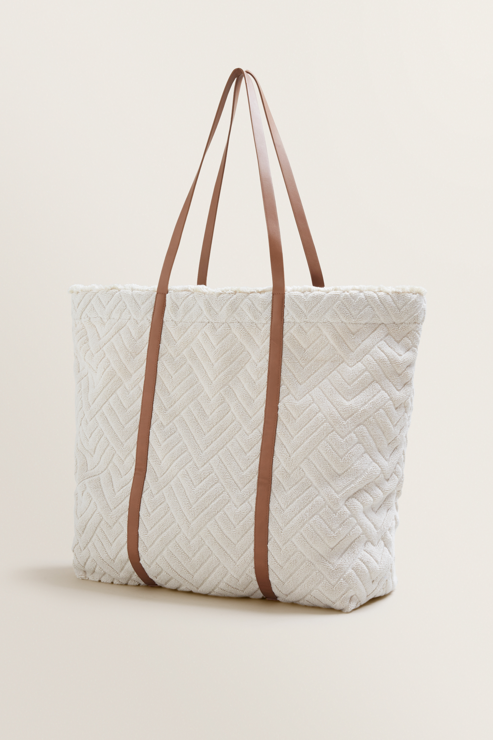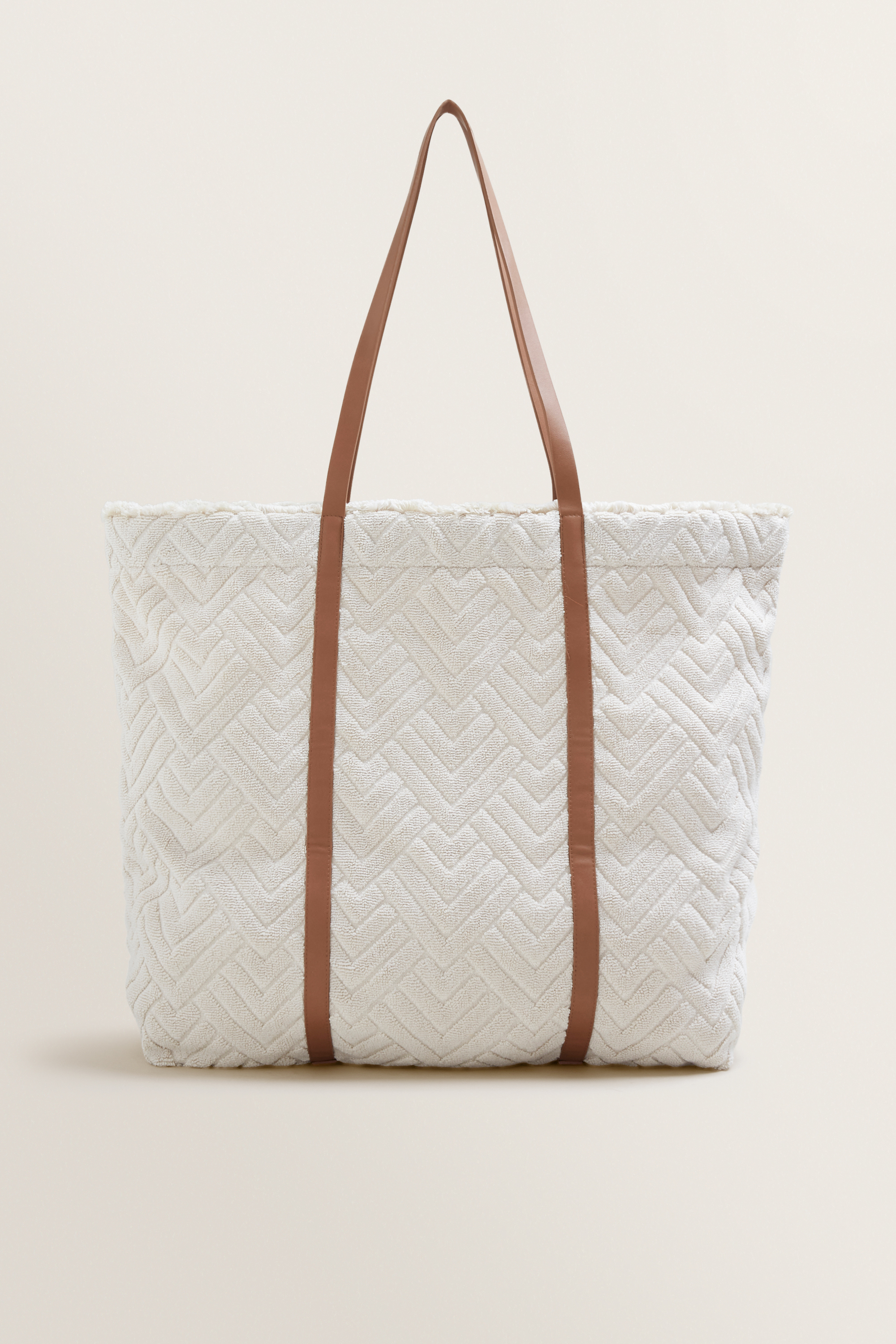 Crafted from a 100% soft cotton towelling fabric, this carry-all Terry Tote is detailed with contrast shoulder straps, top closure, frayed edging and lined interior.