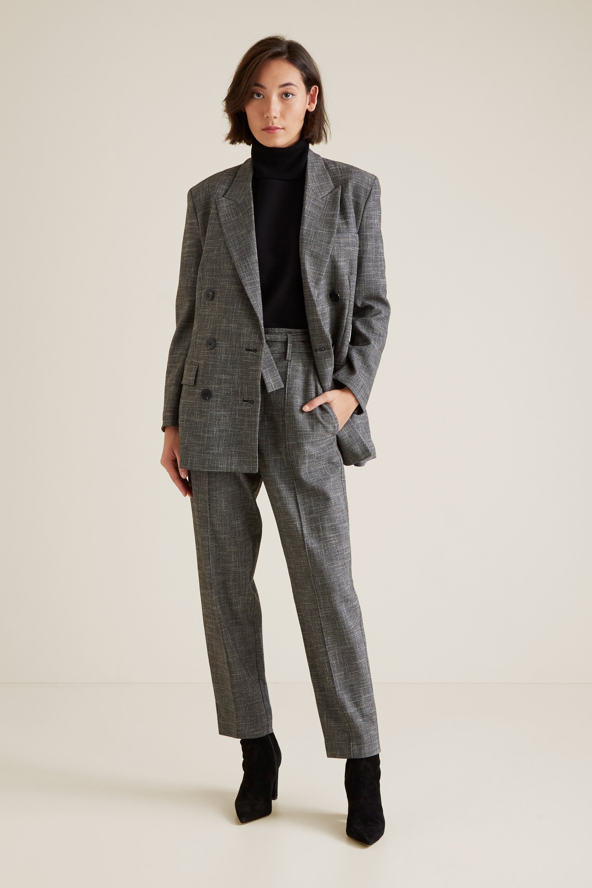 Effortlessly embodying fine tailoring, this Textured Blazer is detailed with an oversized body.